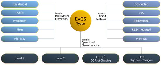 Primary EVCS types based on deployment framework, smart features, and operational characteristics.