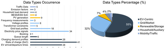- Sensors and Observations: Real-time data is collected through smart meters, session logs, reservation systems, user applications, and grid communication interfaces. Observed variables include EV arrival times, current SoC, time-to-departure, energy demand, charger availability, historical usage patterns, grid signals (e.g., time-of-use tariffs, demand response events), and renewable generation levels. This data forms the observable state space for the RL agent.