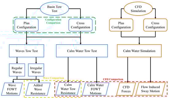 cross configuration may be explained by the different geometry representing the “bow” of the FOWT, meaning that in this orientation of the shape, the bow wave has a greater effect on the tow resistance.