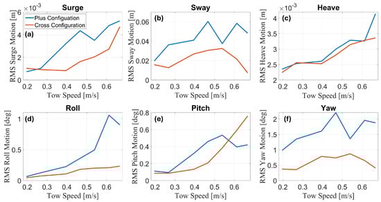 plus configuration, the roll angles increased significantly with increased tow speed, reaching a larger RMS value than the