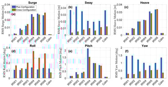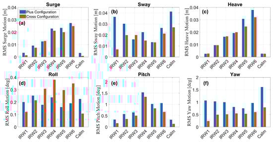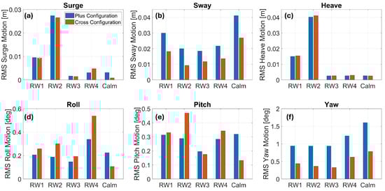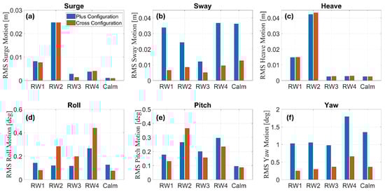 The mean-subtracted RMS values of the platform motions are presented for each wave case.
