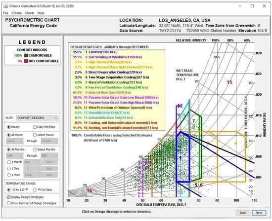 Example of psychrometric Building Bio-Climatic chart from Climate Consultant 6.0.