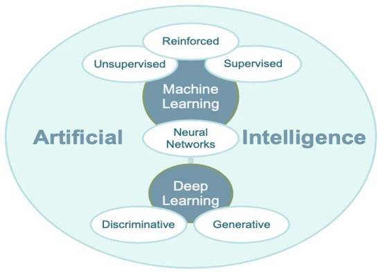 The origins of AI date back to the mid-20th century, marked by the Turing Test and the Dartmouth Conference, where the field was formally established [19,20]. Early research focused on symbolic reasoning and rule-based systems but was limited by computational constraints. In the late 20th century, the focus shifted toward machine learning and neural networks, laying the groundwork for deep learning. In the 21st century, growing computational power and the availability of big data have enabled major breakthroughs in pattern recognition, natural language processing, and computer vision. Recent advancements in reinforcement learning and generative models, such as Generative Adversarial Networks (GANs), have further expanded AI’s capabilities. Its integration with big data, cloud computing, and the Internet of Things (IoT) has expanded its application areas. Moreover, AI-specific hardware like Graphic Processing Units (GPU) and Tensor Processing Units (TPU) has accelerated AI training and inference [20].