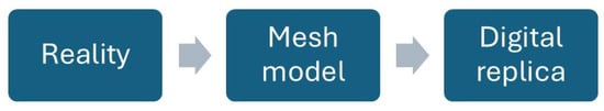 Figure 7. Primary data processing: Mesh model, textured model. - Data/Model Integration: Multi-source, high-volume data is stored in cloud platforms like Google Cloud Microsoft Azure and Amazon Web service (AWS). Some systems also use mirrored databases to store data from existing building systems like BMS. Data fusion techniques integrate various data types (e.g., sensor, mechanical, and image/video data) into a unified digital twin model, often utilizing customized Application Programming Interfaces (APIs). Platforms like Autodesk Revit, Unity 3D, and Midas Gen are used for this integration, enabling real-time updates and the fusion of multi-form data into BIM or other virtual environments. Advanced AI technologies process this data for insights and predictive analysis. The processed data then is visualized in digital twin systems through various software platforms, primarily 3D modeling tools like Autodesk Revit, Autodesk Navisworks, Unity 3D, Virtual and Augmented Reality [37].