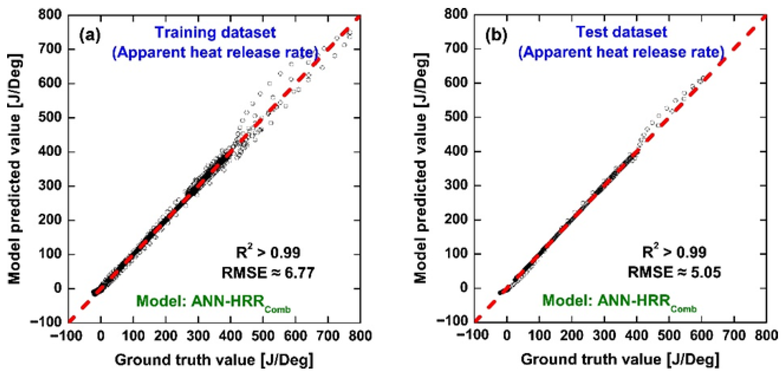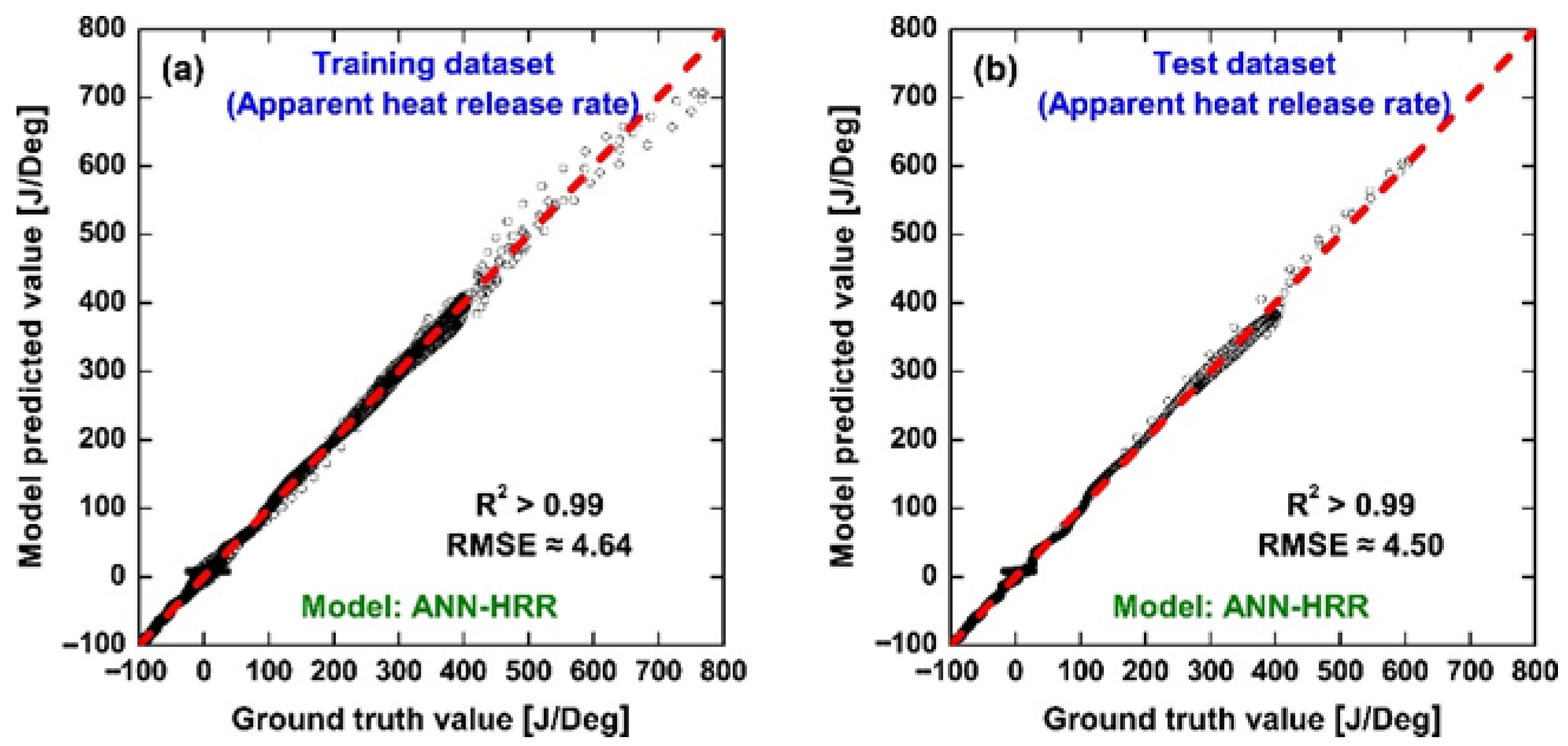 Figure 8 illustrates the parity plots of the ANN-HRR