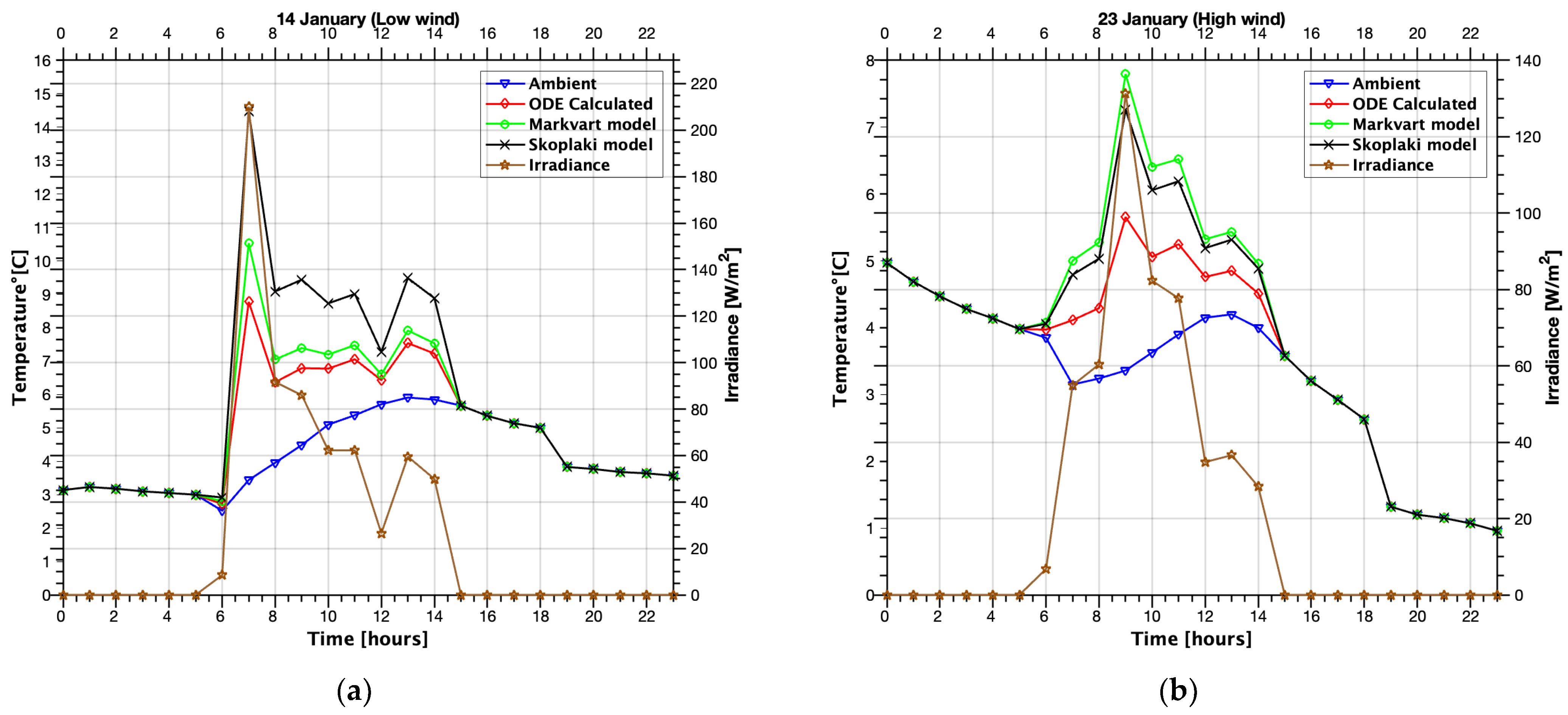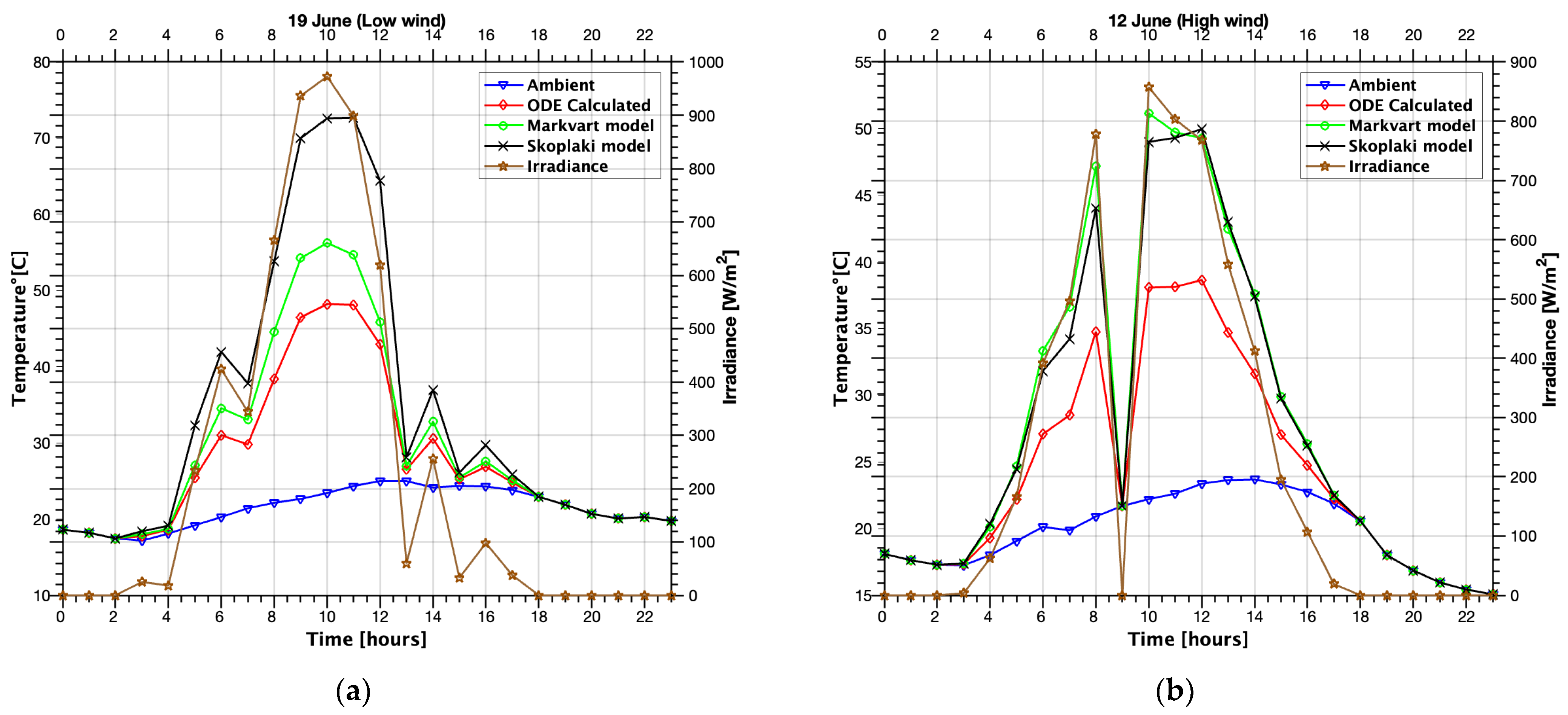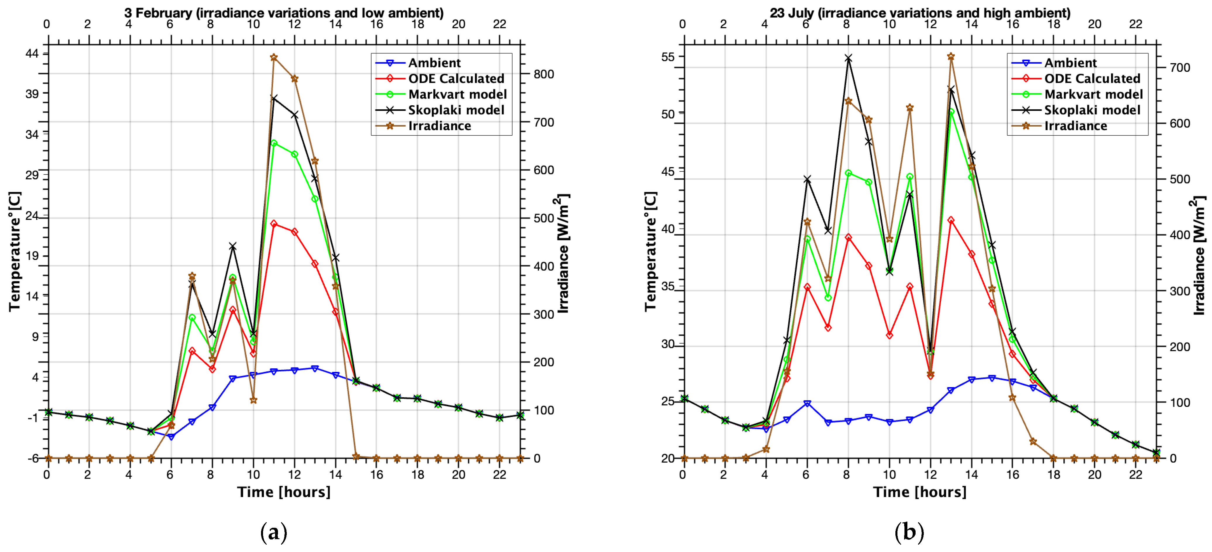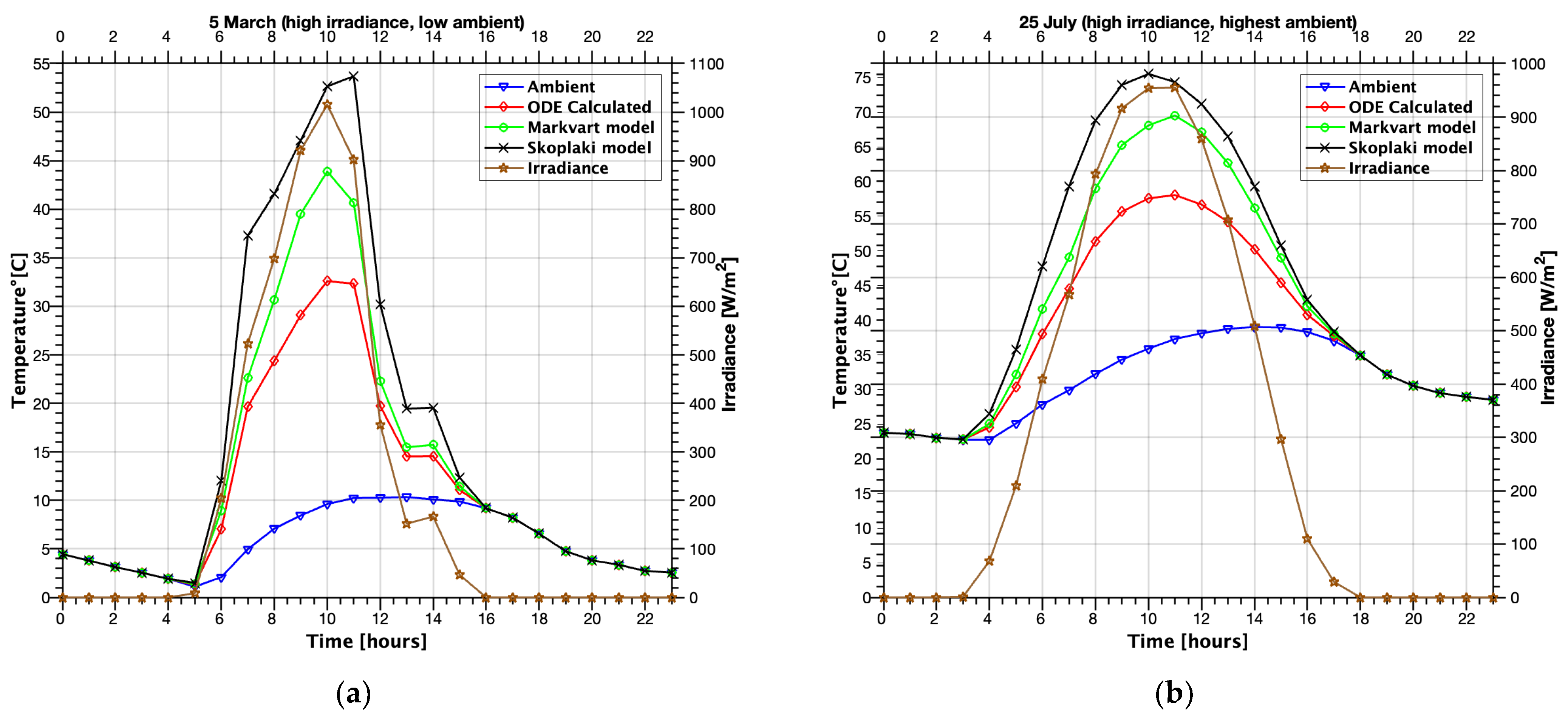 - Skoplaki, E.; Boudouvis, A.G.; Palyvos, J.A. A simple correlation for the operating temperature of photovoltaic modules of arbitrary mounting. Sol. Energy Mater. Sol. Cells 2008, 92, 1393–1402. [Google Scholar] [CrossRef]