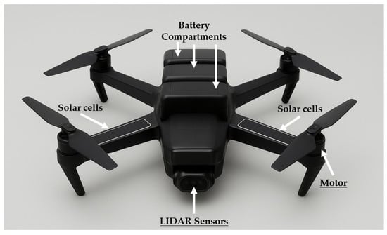 Technological advancements in propulsion and energy systems have been crucial to this development. High-efficiency brushless DC (BLDC) motors, lithium polymer (LiPo) batteries, and emerging photovoltaic technologies such as perovskite solar cells have greatly enhanced flight endurance, energy density, and operational reliability [7,8,9]. The implementation of innovations allows UAVs to undertake longer missions with less dependence on ground charging infrastructure, which is essential for urban deployment.