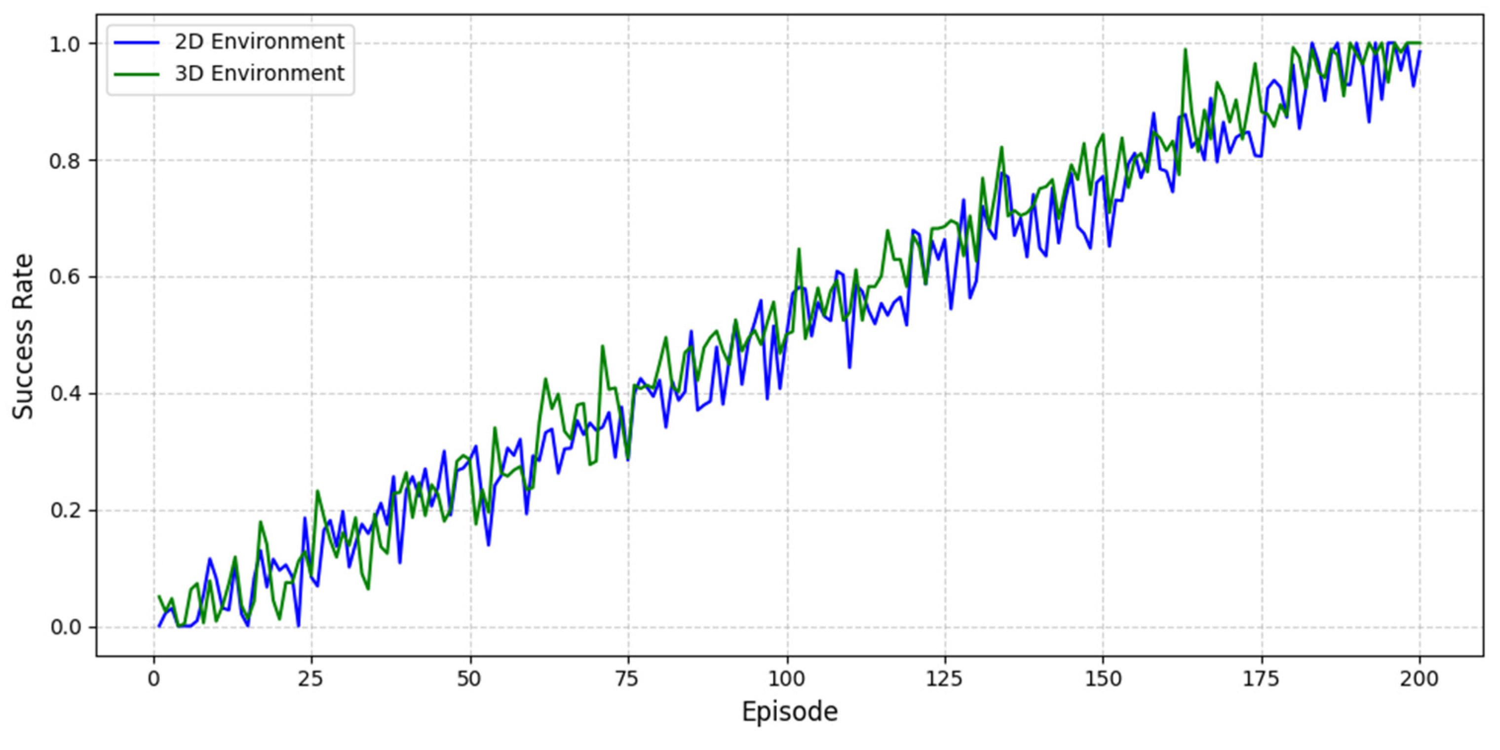 Over the past few years, the integration of AI into UAV navigation has helped improve drone machine learning techniques, optimising flight procedures in complex and changing environments. Studies have highlighted the benefits of using advanced agents, such as Rainbow DQN, in autonomous navigation [24,25]. The objective of these studies was to integrate various algorithmic improvements into an end-to-end framework, ensuring superior performance compared to traditional methods. However, the studies had common critical issues, namely proposing simulation models, which limited the transferability of the results to real-world scenarios, and therefore complex ones such as urban contexts characterised by uncertainty and sensory disturbances.