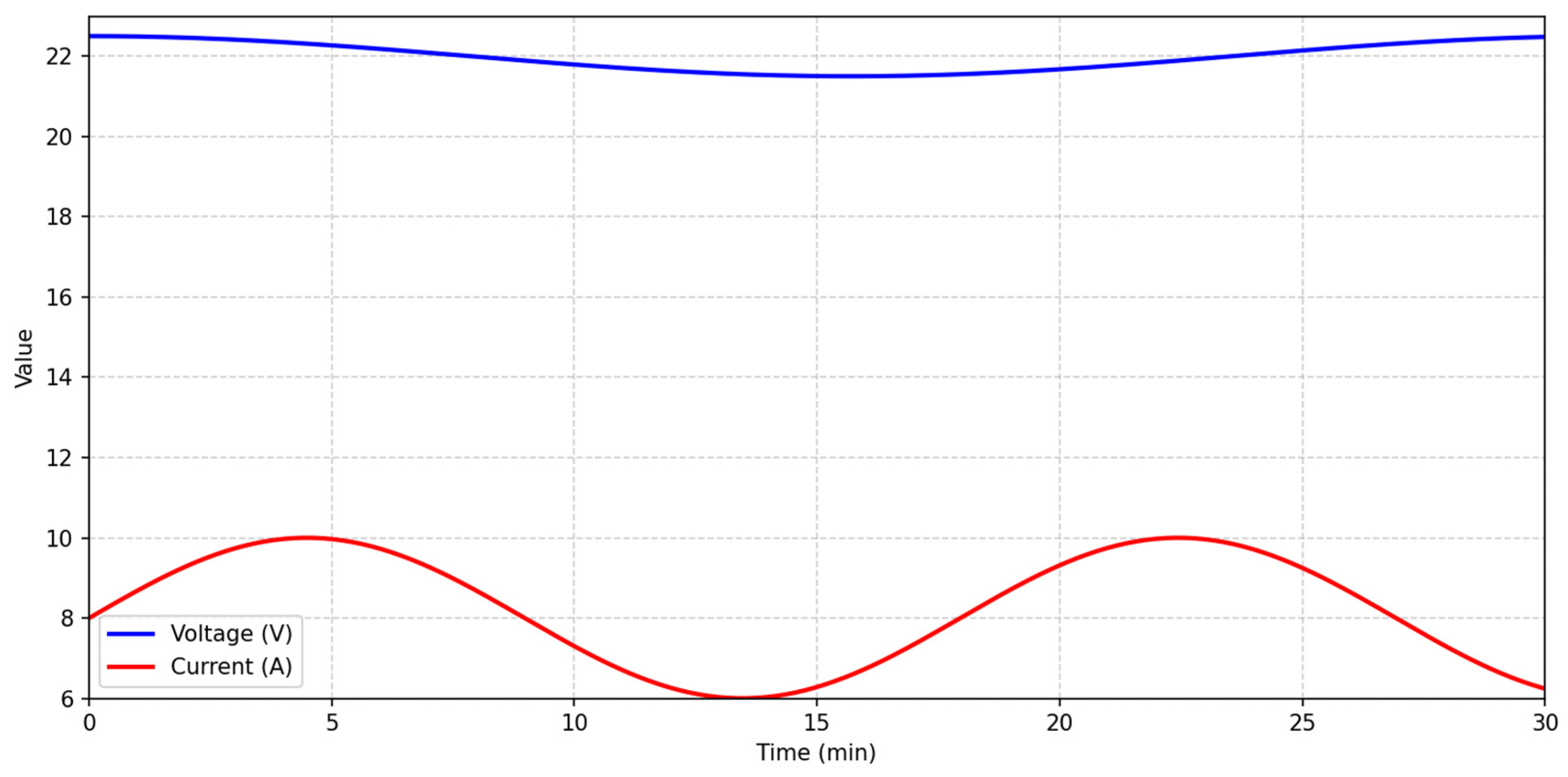 Figure 20. Time-domain profiles of voltage and current during autonomous flight.