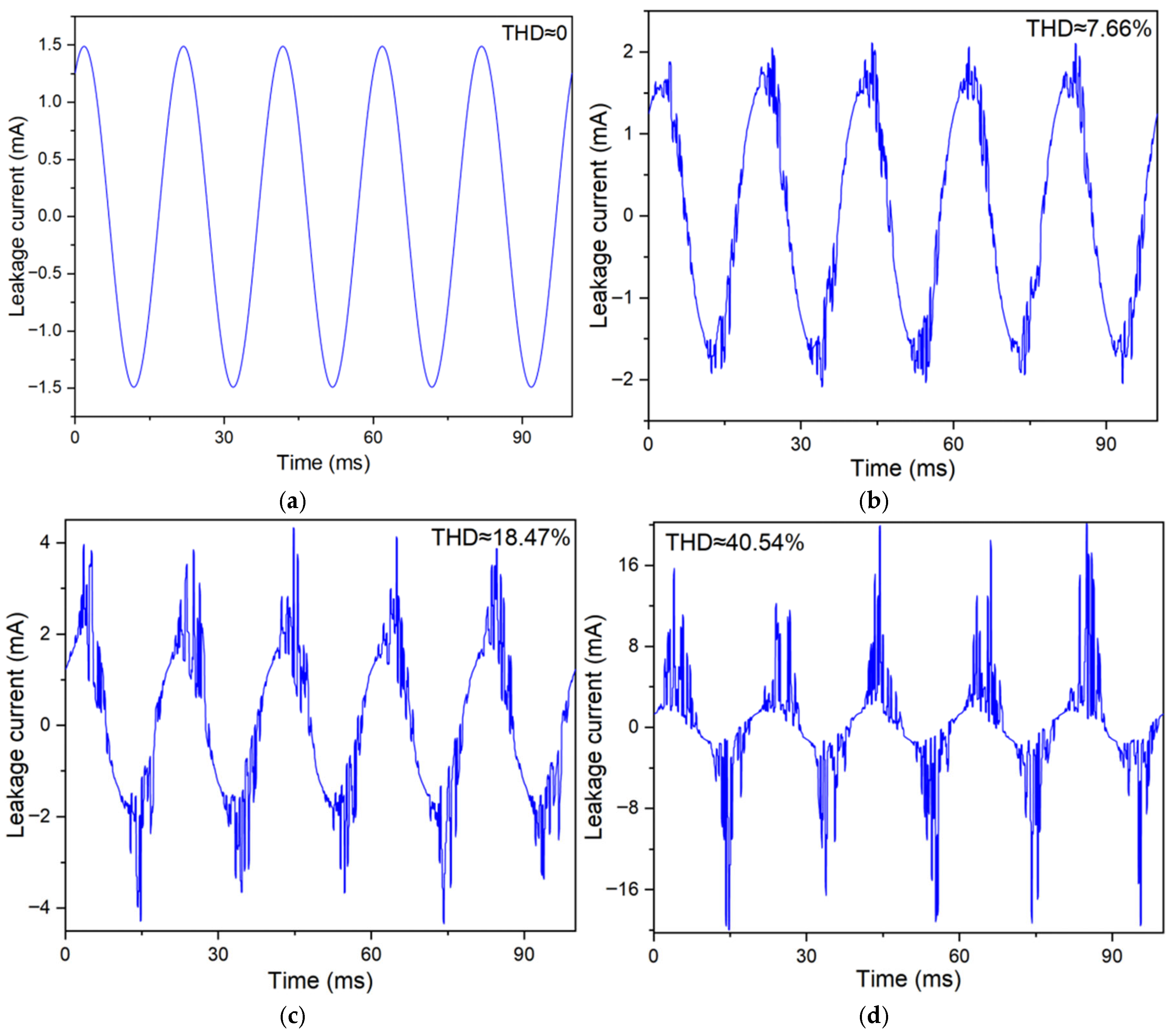 3.2. Results of Leakage Current Simulation and Measurement