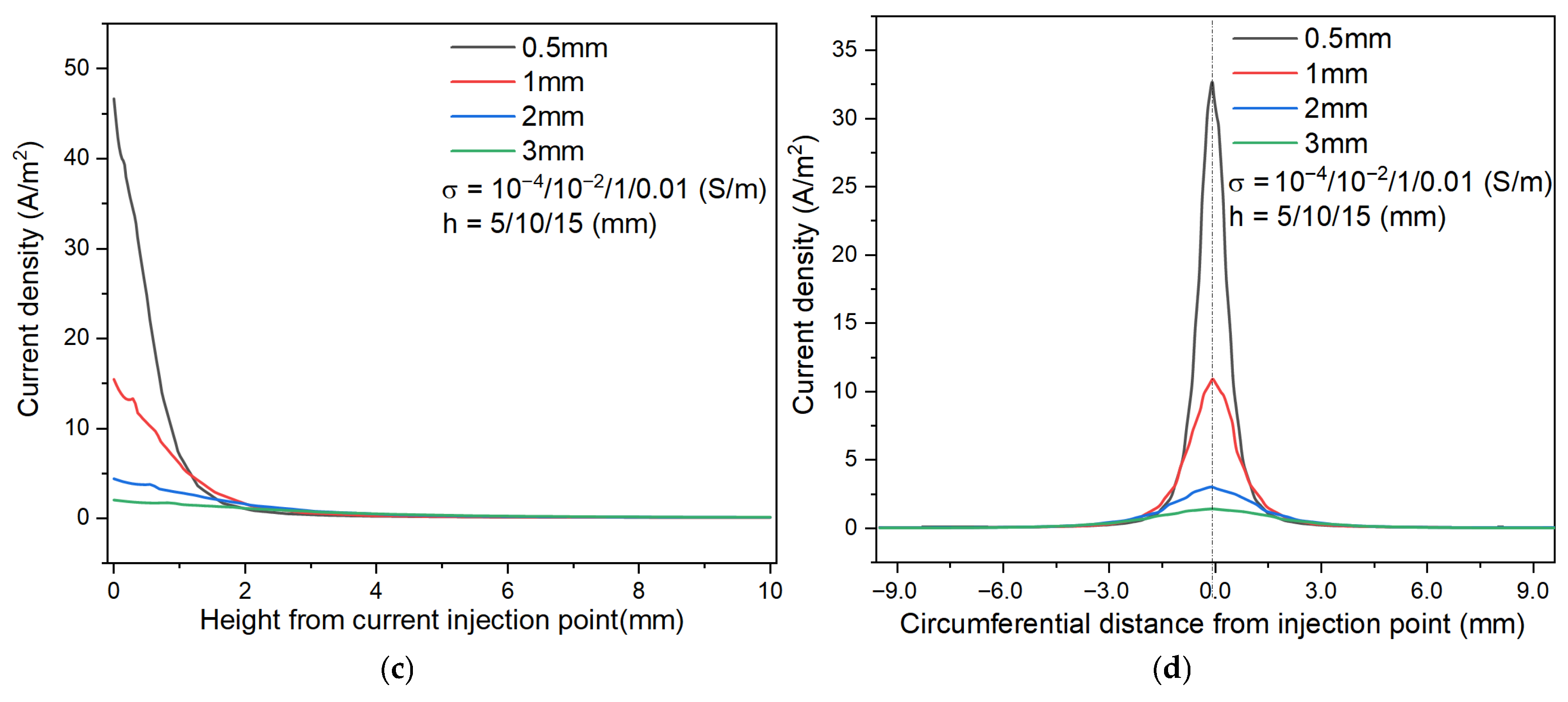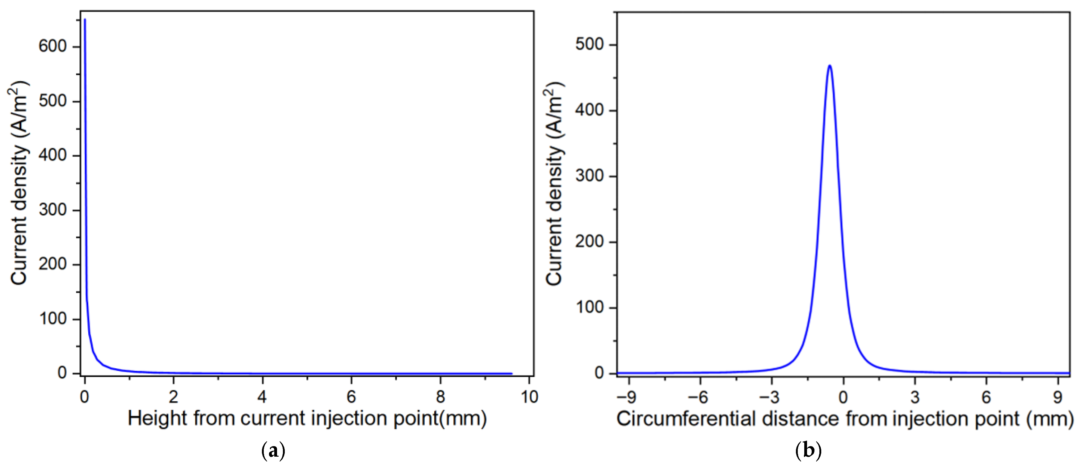 3.4. Results of Current Density Distribution and Mitigation