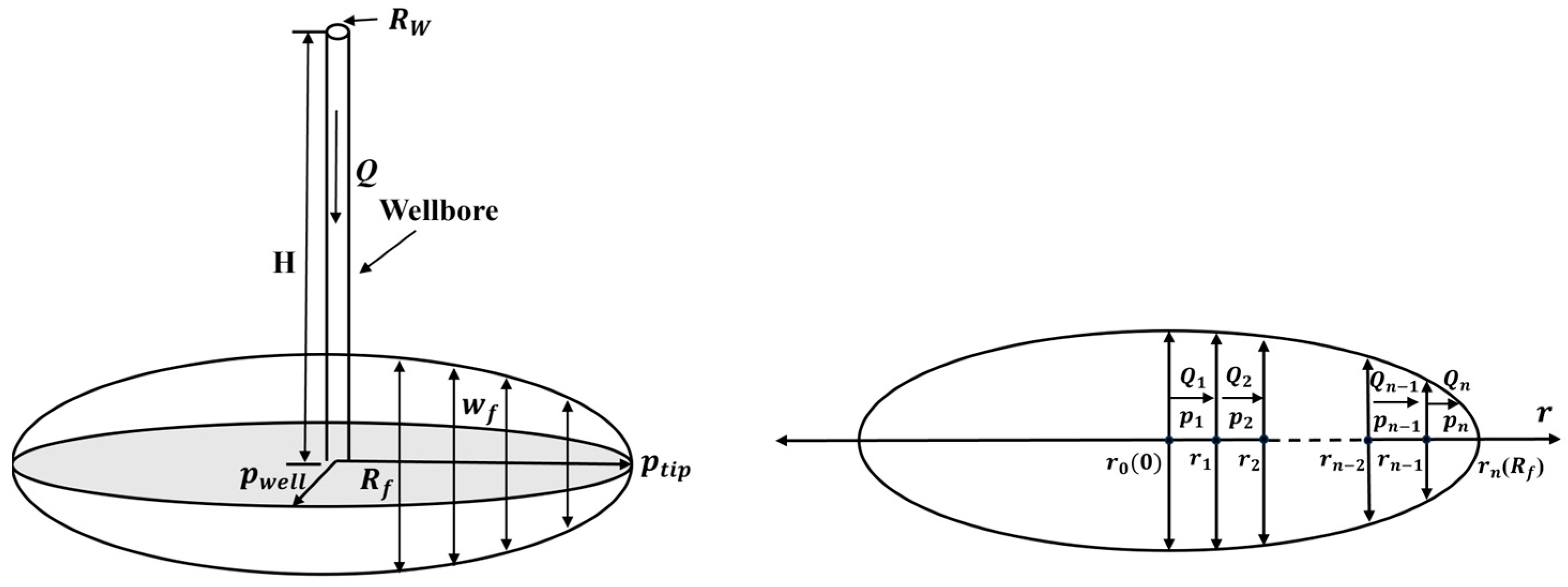 - Nguyen, H.T.; Lee, J.H.; Elraies, K.A. A review of PKN-type modeling of hydraulic fractures. J. Pet. Sci. Eng. 2020, 195, 107607. [Google Scholar] [CrossRef]