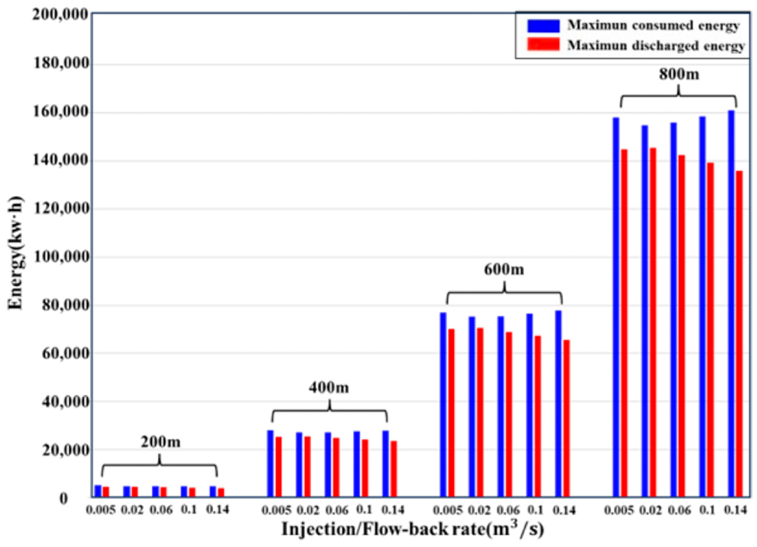 - Although the fluid recovery rate within the fractures cannot reach 100% during the energy discharged process and is influenced by the flowback rate, its impact on the scale of energy storage remains within an acceptable range.