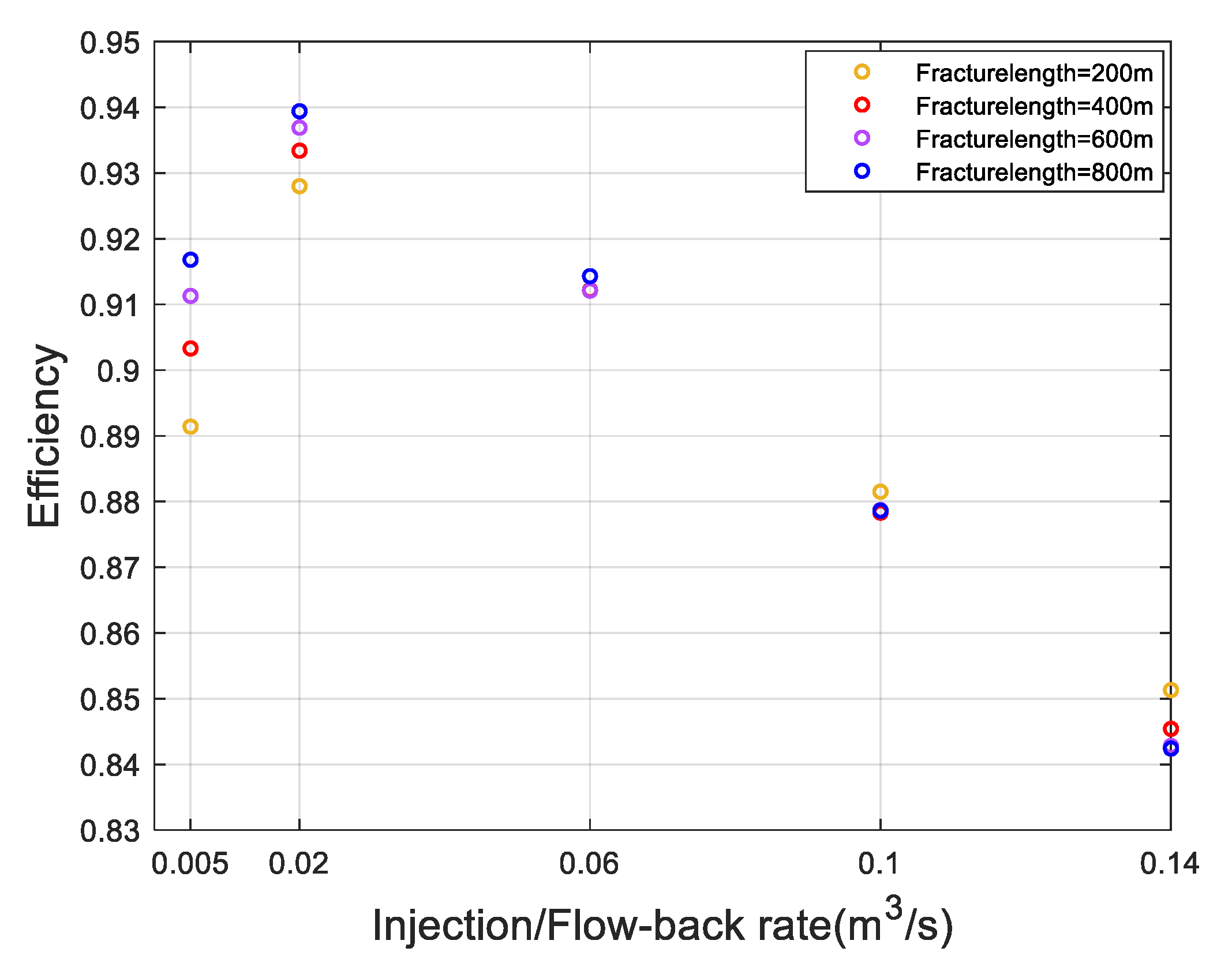 Fracture Radius (m) | Injection/Flow-Back Rate (m3/s) |