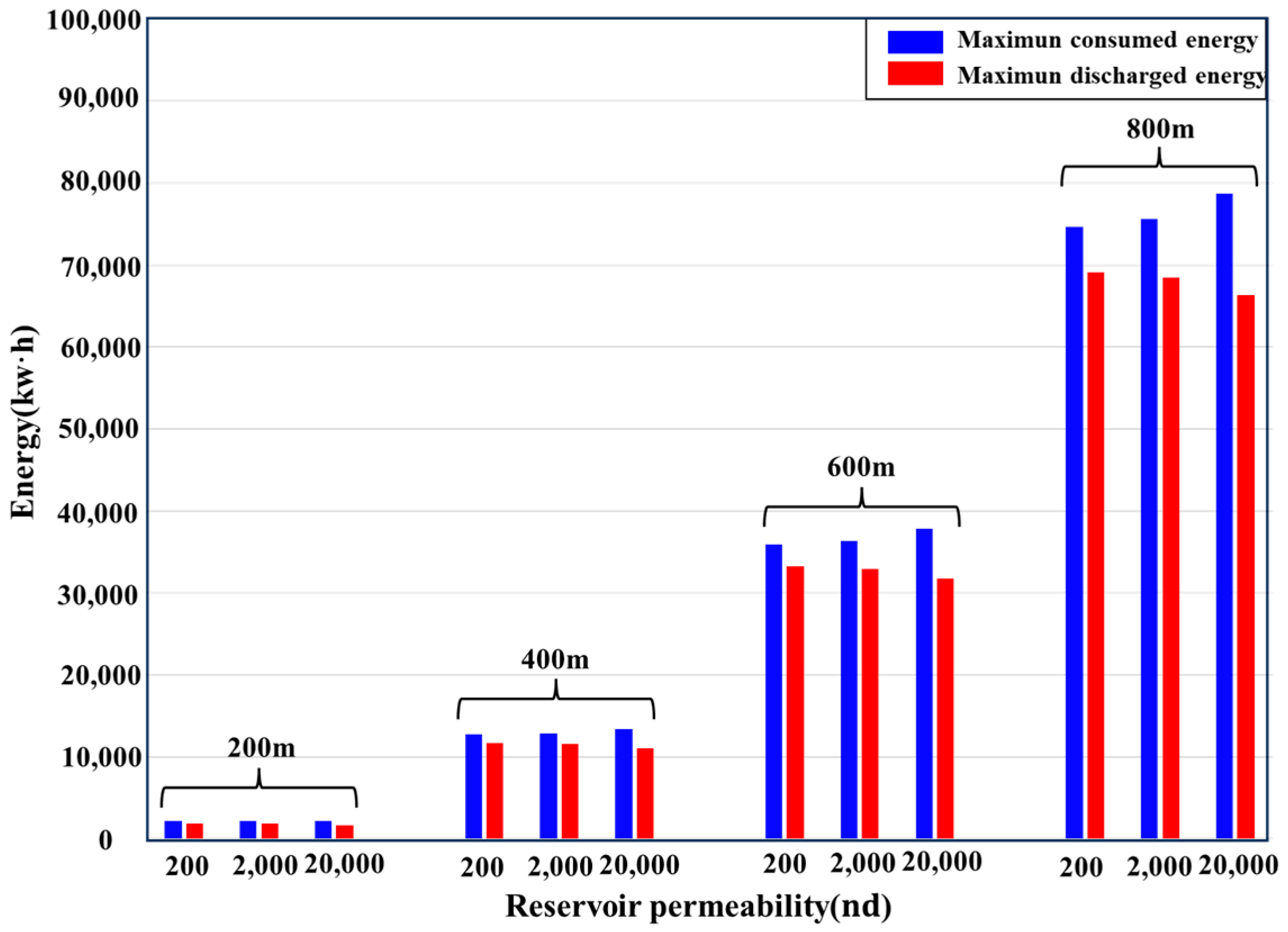 - Lowering reservoir permeability will enhance energy storage efficiency. Additionally, it will minimize the efficiency gap between the optimal injection/flow-back rate and various fracture sizes.