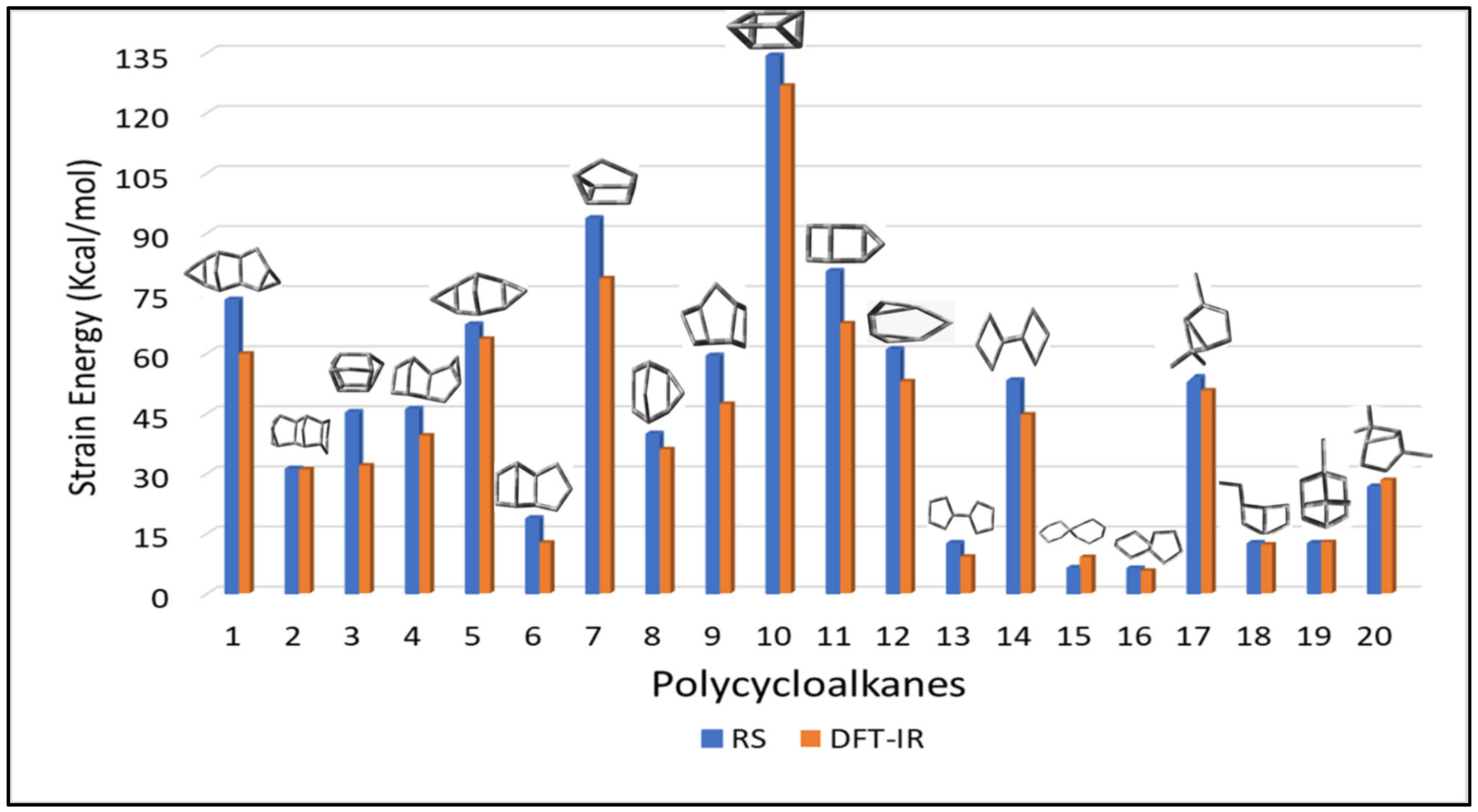 Polycycloalkanes | RS | DFT-IR | Ref | ∆ (RS—Ref) % | ∆ (DFT-IR—Ref) % |