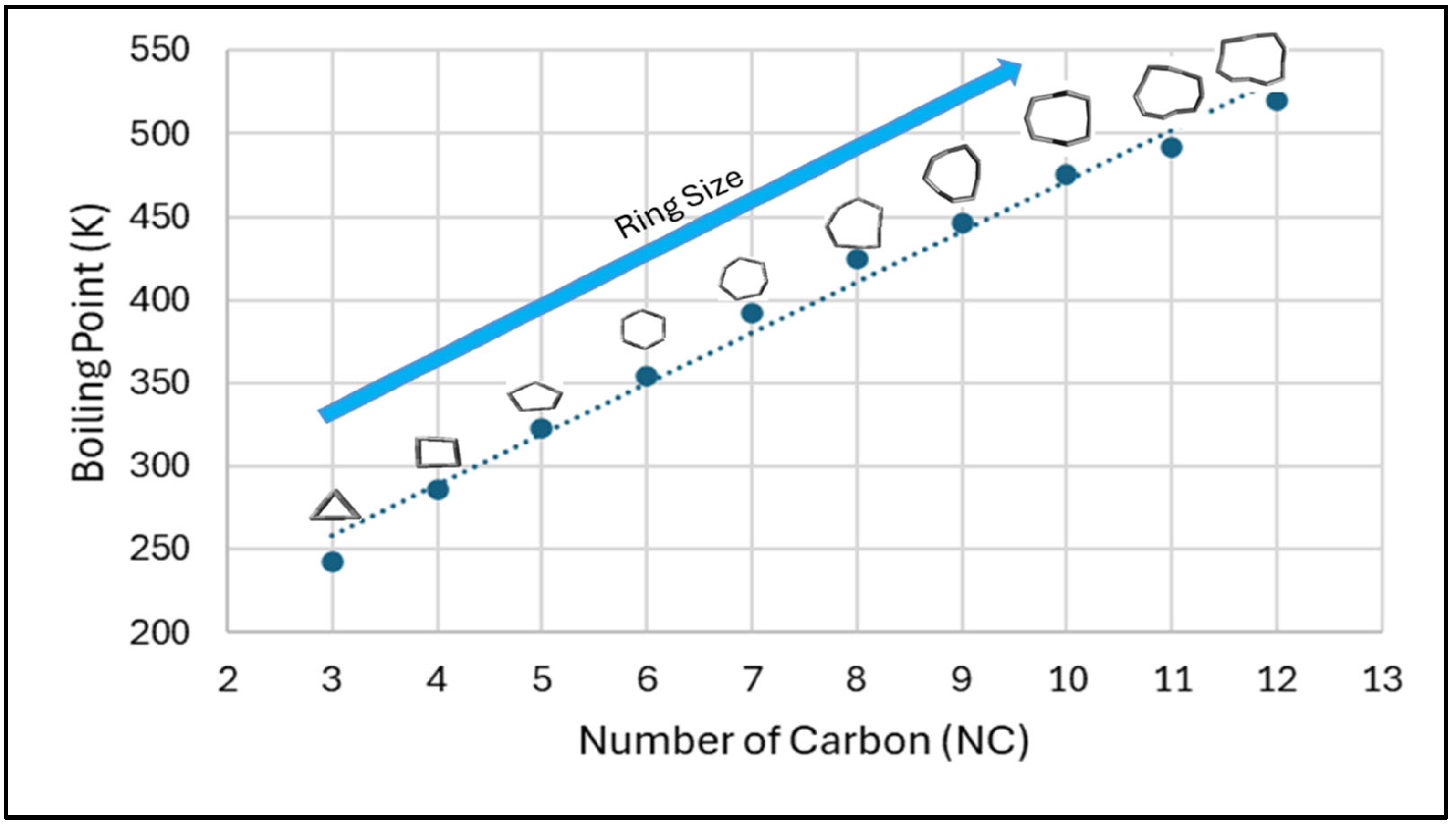 - Landera, A.; Bambha, R.P.; Hao, N.; Desai, S.P.; Moore, C.M.; Sutton, A.D.; George, A. Building structure-property relationships of cycloalkanes in support of their use in sustainable aviation fuels. Front. Energy Res. 2022, 9, 771697. [Google Scholar] [CrossRef]