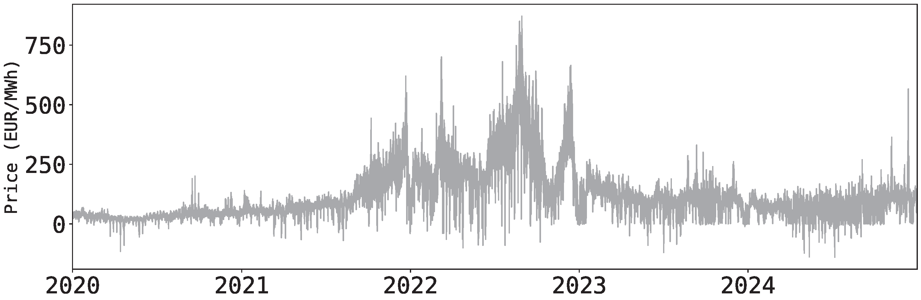 , spike durations reach approximately 8 to 9 h. Similar observations apply to 2021. It is worth noting that 2023 corresponds to the post-energy crisis period in Europe, during which prices began to stabilize after the 2022 peak, although price levels remained high when compared to those previous to 2021 (i.e., observe the price mean and standard deviations between 2020, 2023, and 2024 in