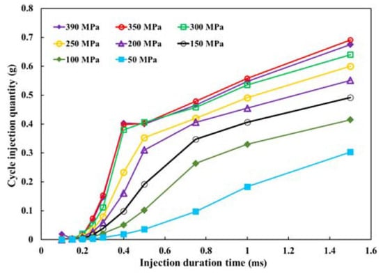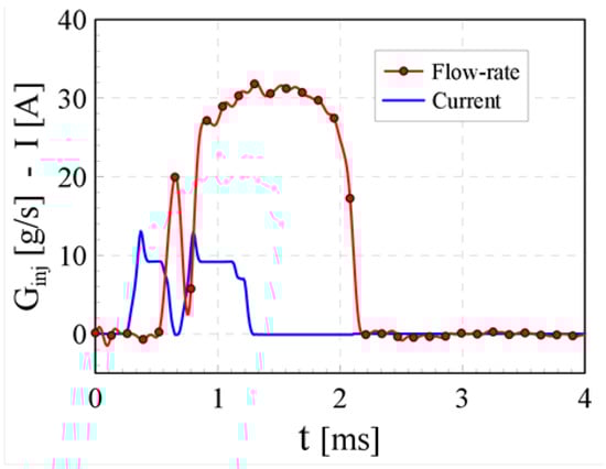 Injected flow rate for a pilot–main injection with DT ≤ 400 µs [30].