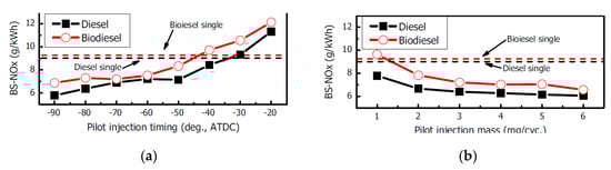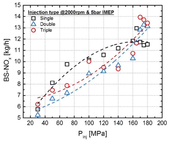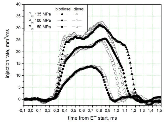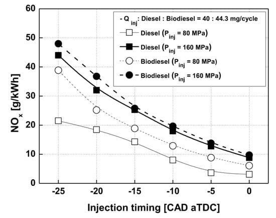 - Churkunti, P.; Mattson, J.M.S.; Depcik, C. Influence of Fuel Injection Pressure and Biodiesel Upon NOx Emissions; SAE 2016-01-0877; SAE: Warrendale, PA, USA, 2016. [Google Scholar]