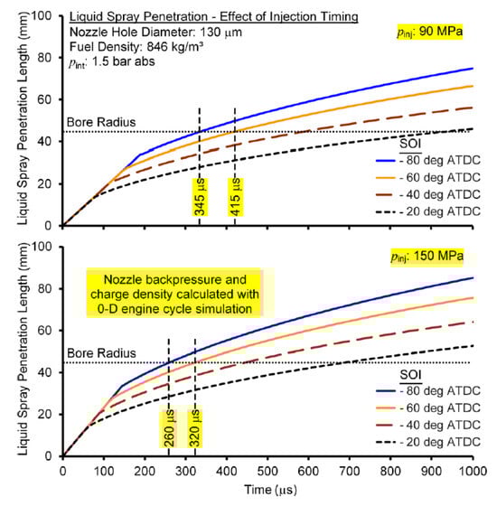 - Kook, S.; Pickett, M. Liquid length and vapor penetration of conventional, Fischer–Tropsch, coal-derived, and surrogate fuel sprays at high-temperature and high-pressure ambient conditions. Fuel 2012, 93, 539–548. [Google Scholar] [CrossRef]