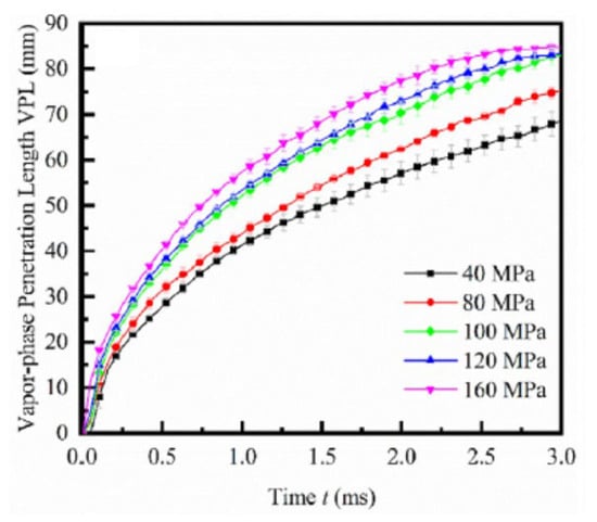 - Payri, R.; Gimeno, J.; Bracho, G.; Vaquerizo, D. Study of liquid and vapor phase behavior on Diesel sprays for heavy duty engine nozzles. Appl. Therm. Eng. 2016, 107, 365–378. [Google Scholar] [CrossRef]