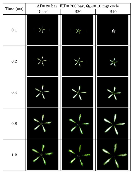 - Gong, G.; Song, C.; Liu, L. Spray characteristics of diesel fuel, Fisher-Tropsch diesel fuel and their blend. In Proceedings of the International Conference on Electrical and Control Engineering, Yichang, China, 16–18 September 2011; pp. 4079–4082. [Google Scholar]