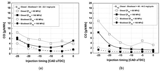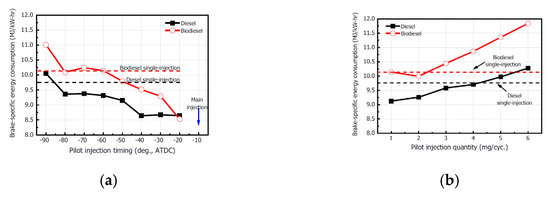 - Kyunghyun, R. Effects of pilot injection timing on the combustion and emissions characteristics in a diesel engine using biodiesel-CNG dual fuel. Appl. Energy 2013, 111, 721–730. [Google Scholar]