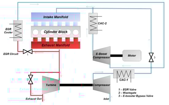 - Dahodwala, M.; Joshi, S.; Krishnamoorthy, H.; Koehler, E.W.; Franke, M. Evaluation of System Configurations for Downsizing a Heavy-Duty Diesel Engine for Non-Road Applications. SAE Int. J. Engines 2016, 9, 2272–2285. [Google Scholar] [CrossRef]