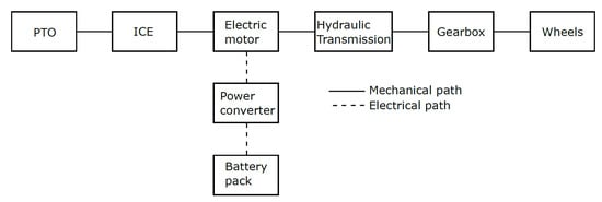- Achten, P.A.J. A serial hydraulic hybrid drive train for off-road vehicles. In Proceedings of the International Exposition for Fluid Power (IFPE 2008) Technical Conference, Las Vegas, NV, USA, 11–15 March 2008; pp. 515–521. [Google Scholar]