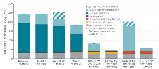- Bieker, G. A Global Comparison of the Life-Cycle Greenhouse Gas Emissions of Combustion Engine and Electric Passenger Cars; Technical Report of the International Council on Clean Transportation (ICCT) Europe; ICCT: Berlin, Germany, 2021. [Google Scholar]
