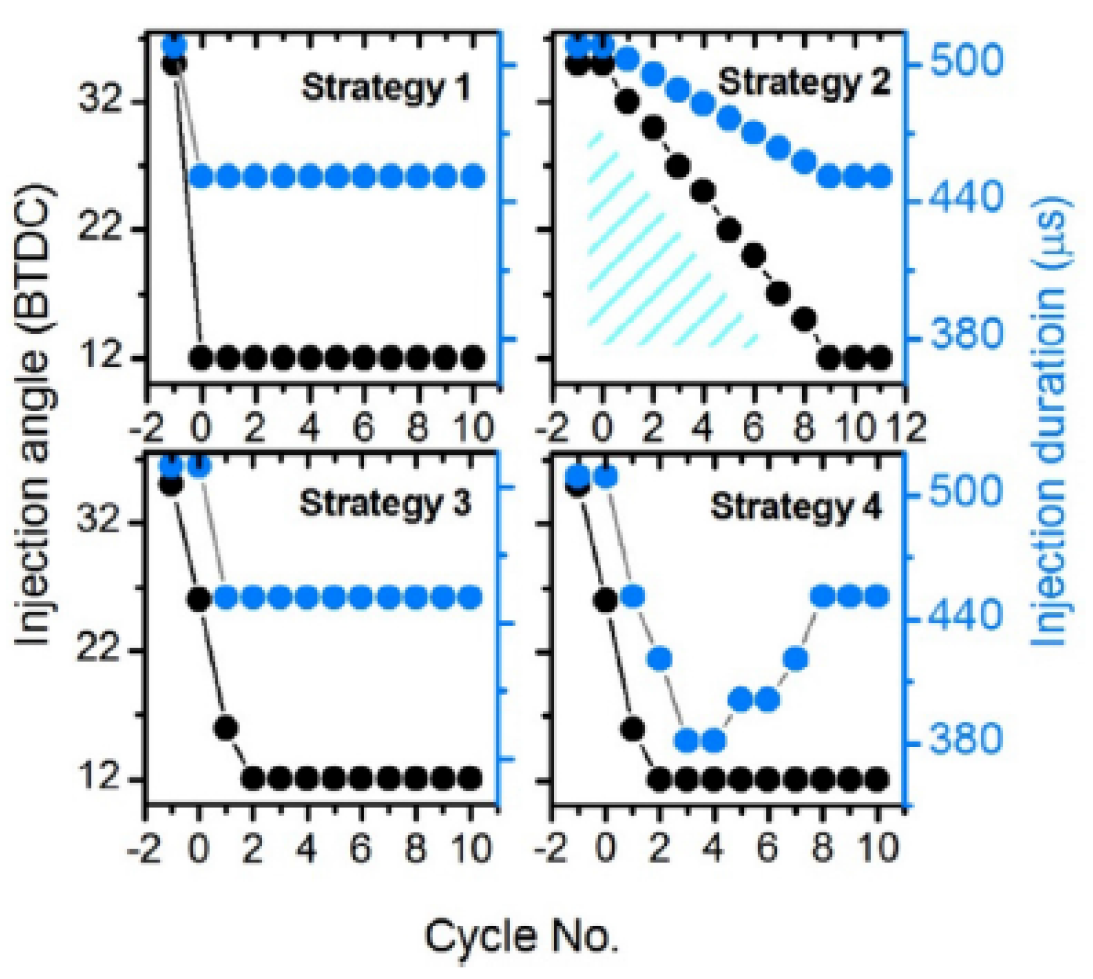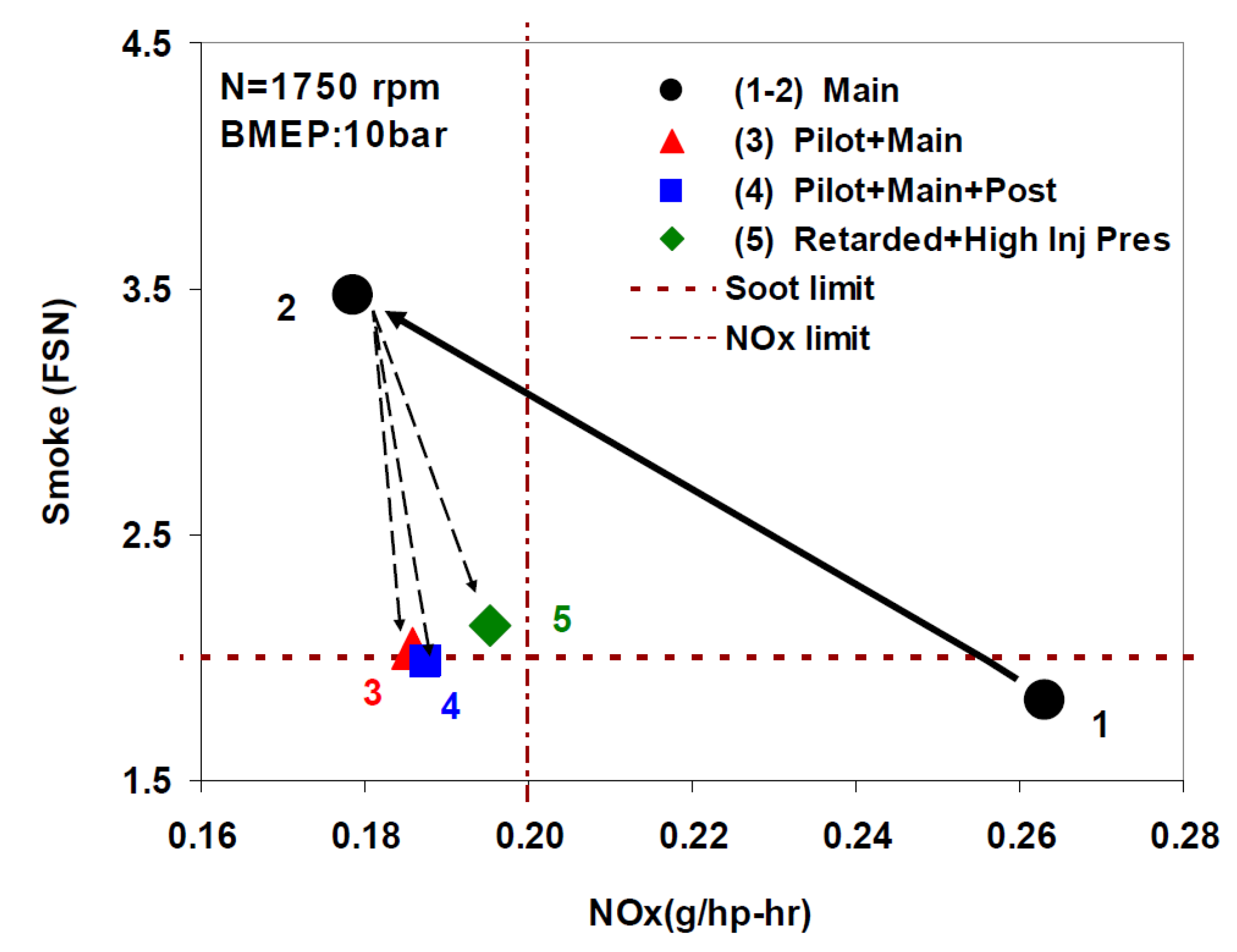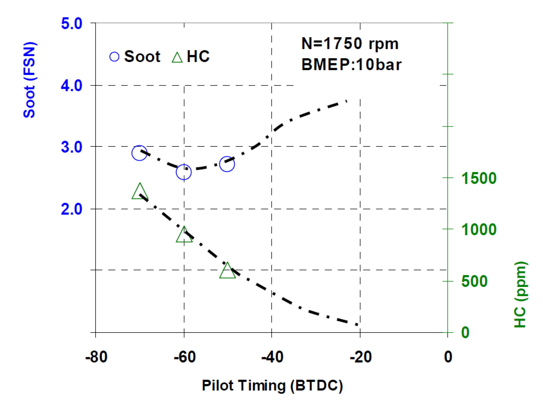 | Pilot injection timing (CAD aTDC) | −20 | −20 | −20 | −46 |