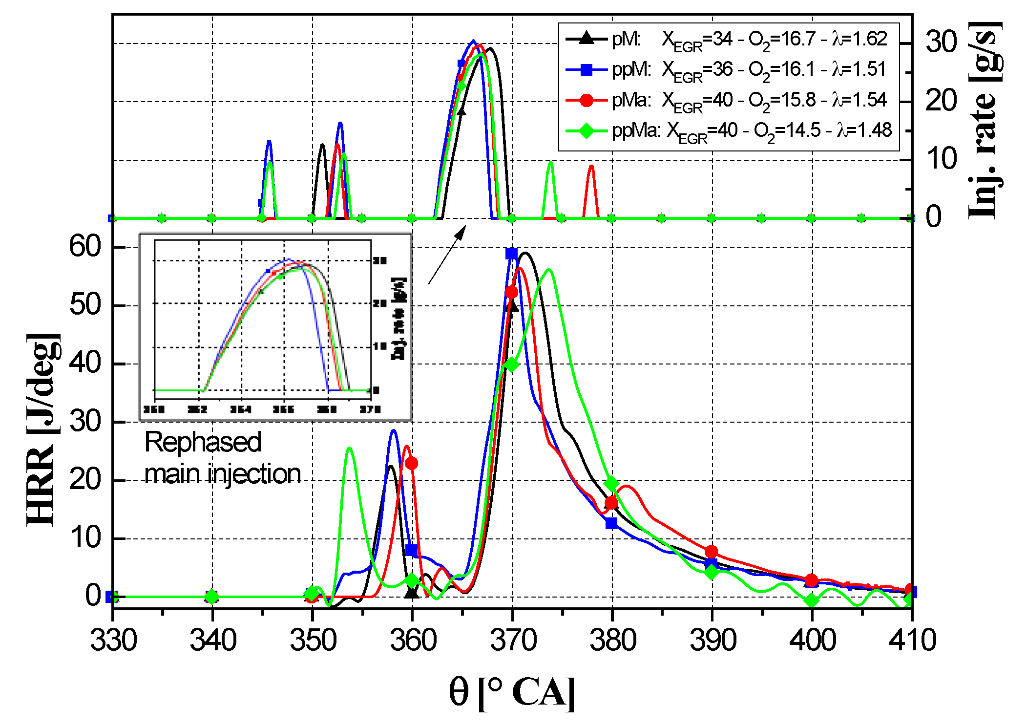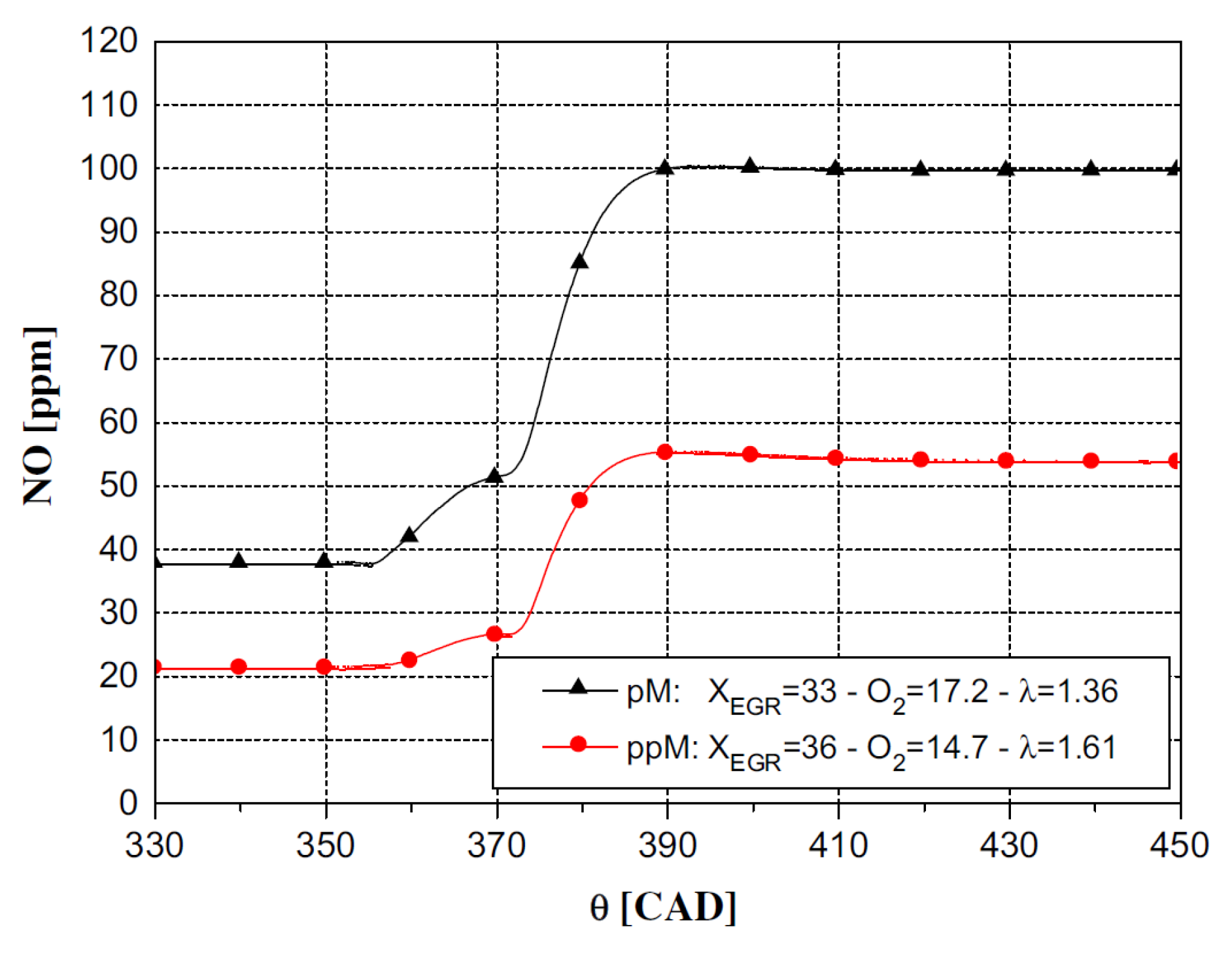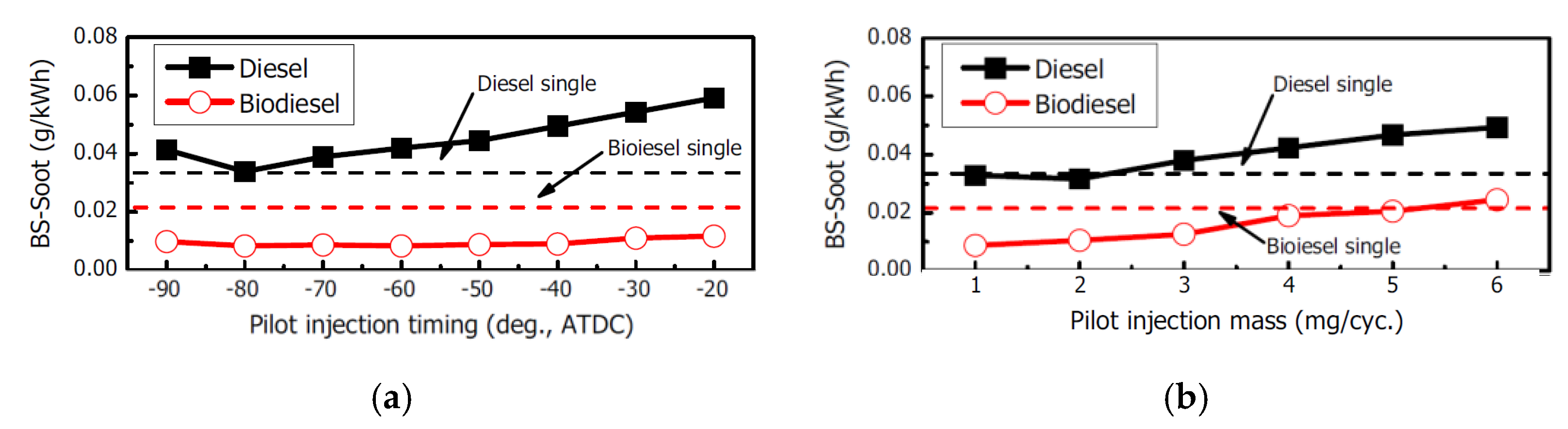 | Pilot injection timing (CAD aTDC) | −20 | −20 | −20 | −46 |