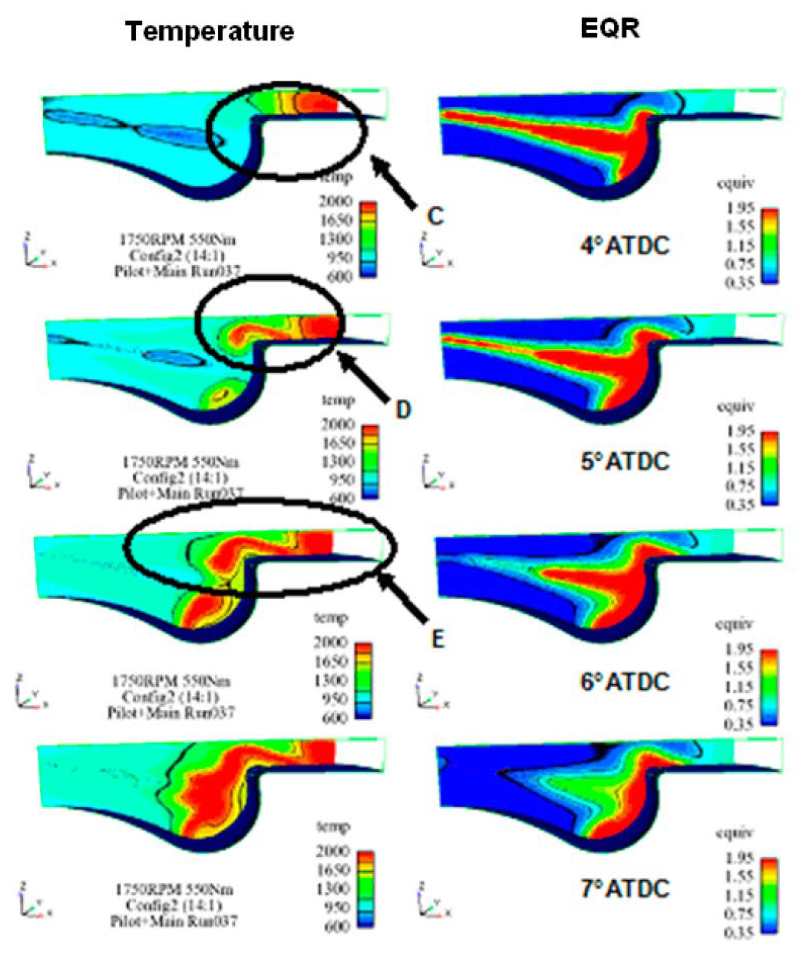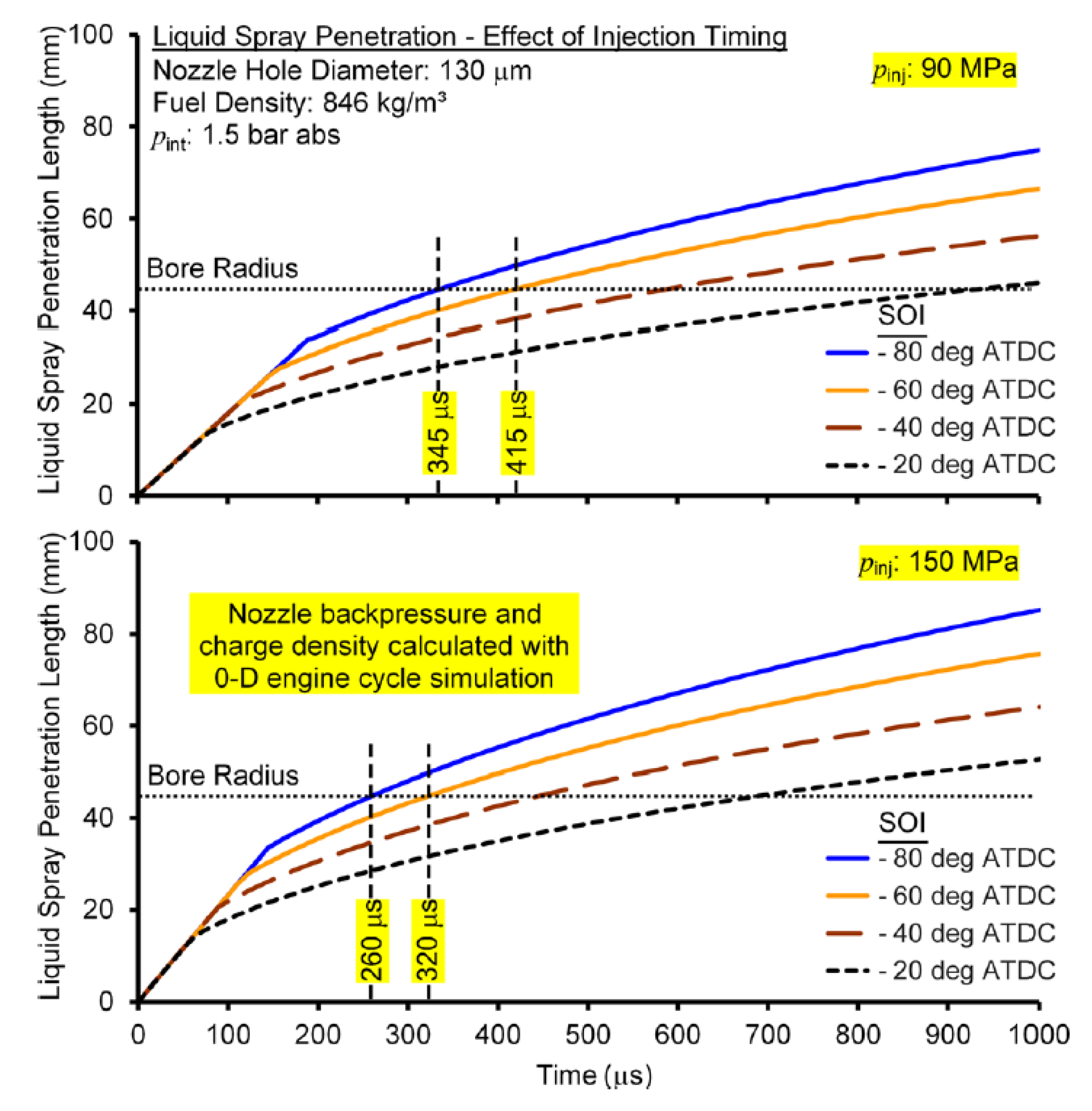 - Zone A: slightly more mass can be injected before cylinder wall wetting when the piston is closer to the nozzle because the spray is more likely to be confined in the piston bowl without being able to reach the cylinder walls (impingement on the bowl is much less critical than impingement on the cylinder walls);