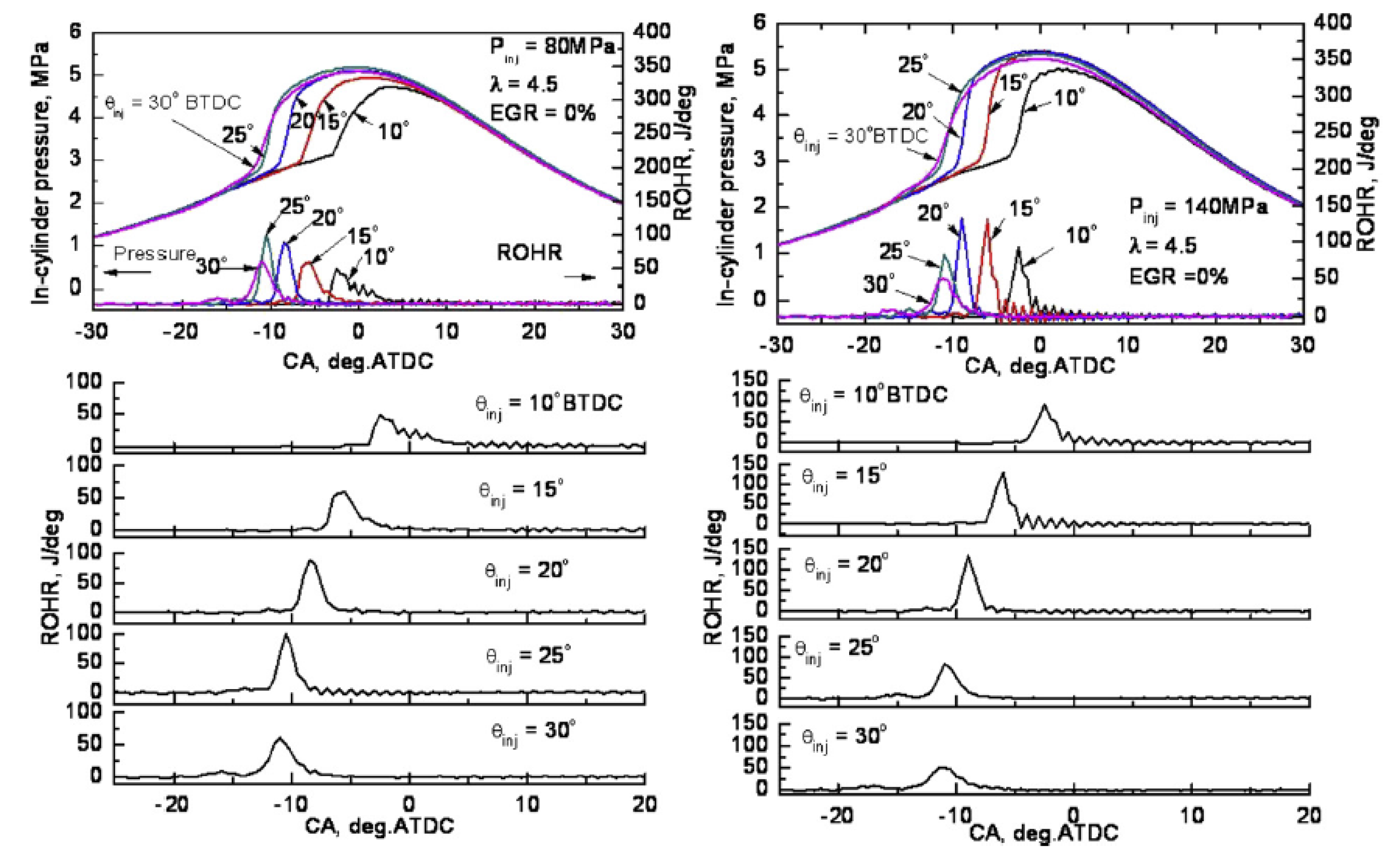 3.2.2. Effect of Injection Timing