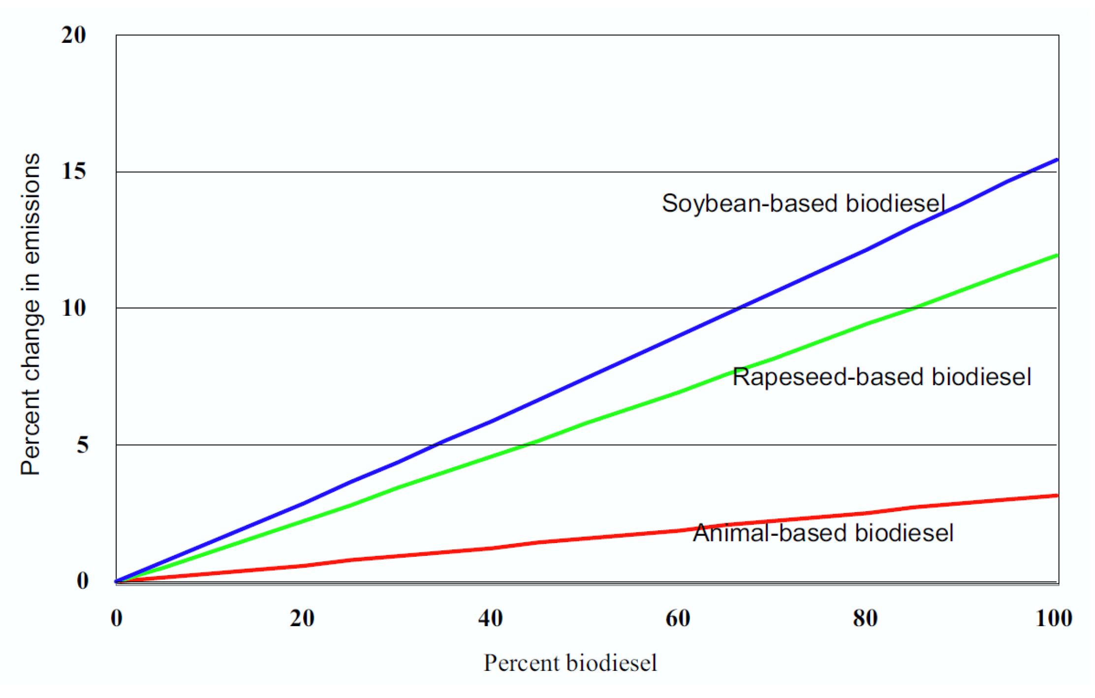 - biodiesel also tends to exhibit shorter combustion durations and this, together with a possible earlier SOC, creates longer residence times at very high temperatures for nitrogen chemistry to occur before expansion lowers these temperatures. This circumstance, coupled with the already discussed higher content of oxygen available in the cylinder, leads to increased NOx emissions;