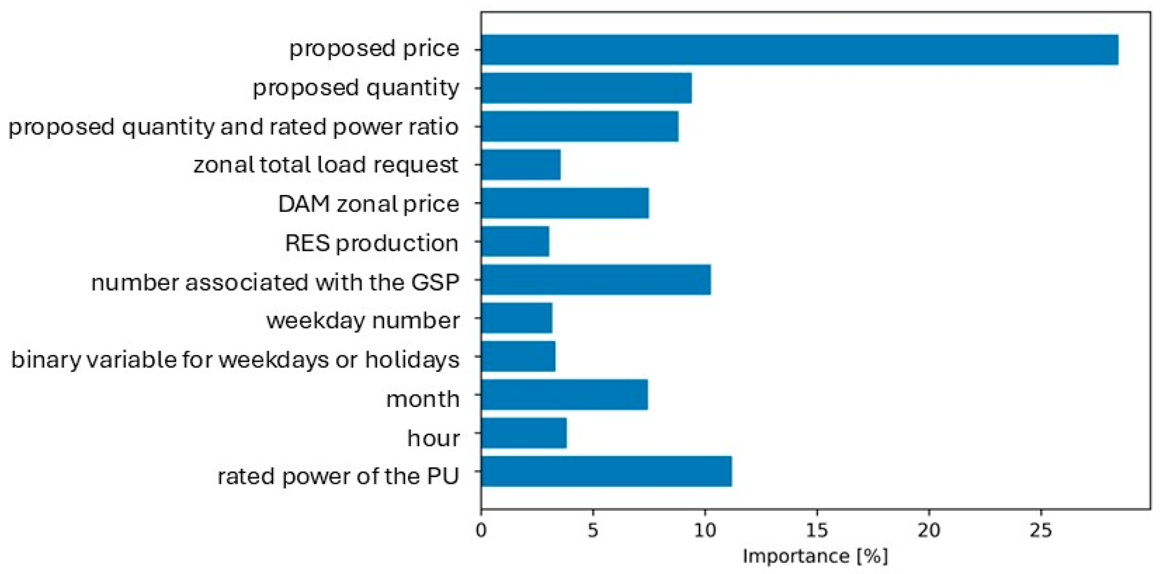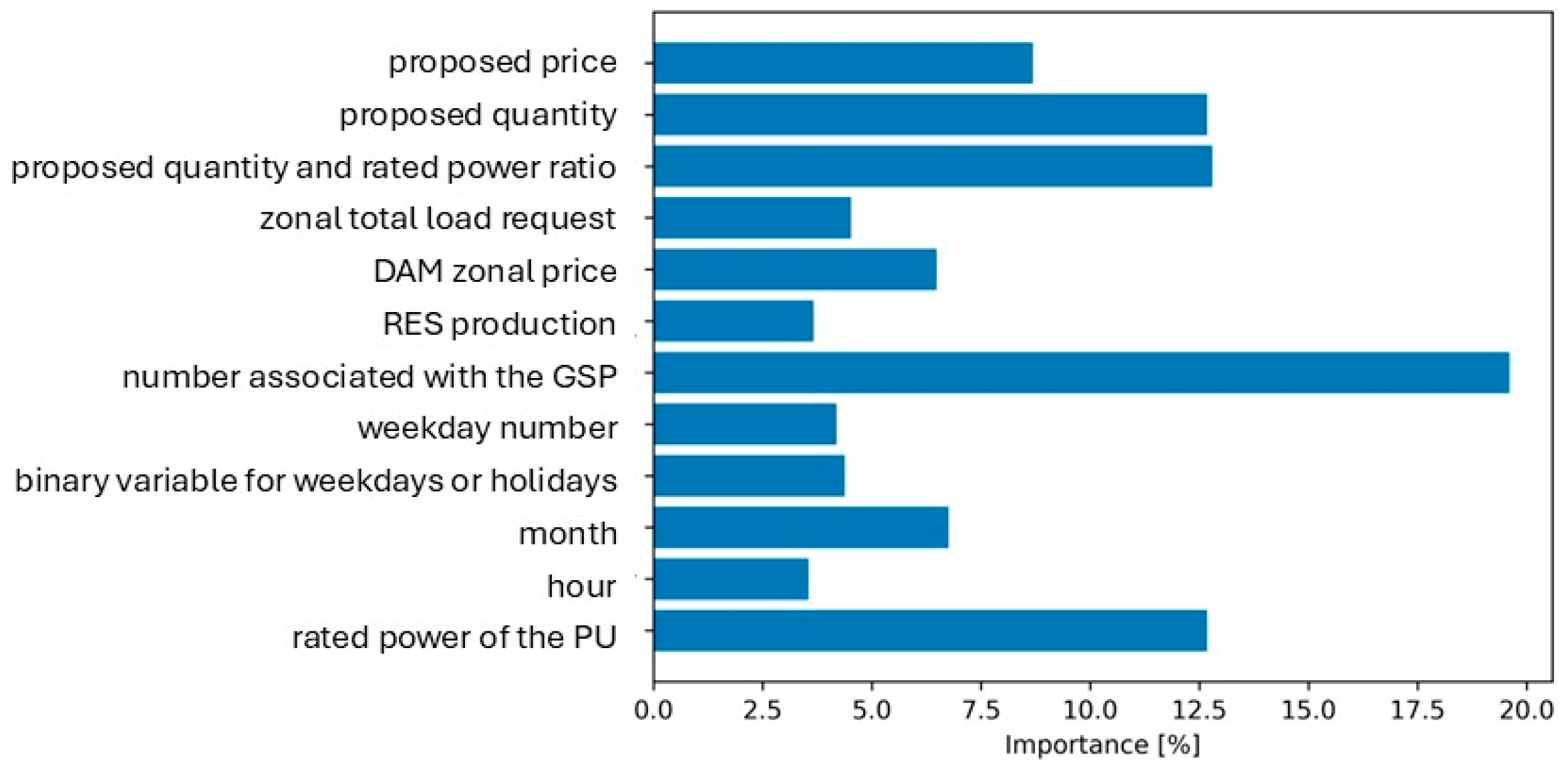 - Tang, Q.; Guo, H.; Zheng, K.; Chen, Q. Forecasting individual bids in real electricity markets through machine learning framework. Appl. Energy 2024, 363, 123053. [Google Scholar] [CrossRef]