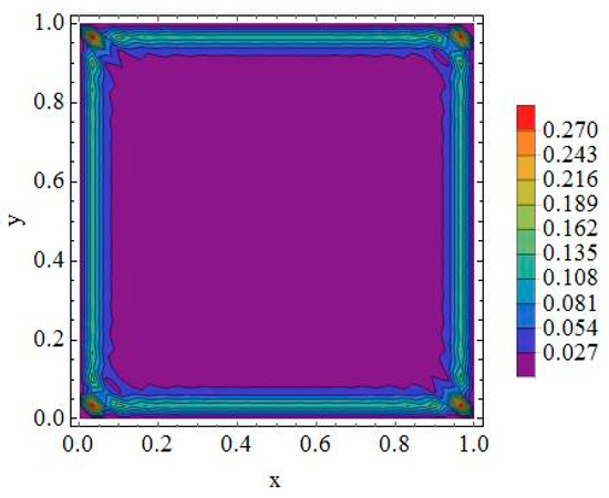 Error map for the two-dimensional problem, where , , , . MQ collocation is performed with and .