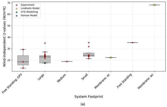 The methodological approach employed for coding the category column was synchronised with the data collection process, such that records were assigned categories based on the data they reported. Studies assessing and characterising the observed cooling effects in FPV systems as compared with GPV systems via experimentation (CC_Exp) and modelling (CC_Mod), studies conducting experimental analyses of the thermal and electrical performance of FPV systems (FPV_Exp), those investigating the various means of further improving FPV temperature (CT), assessing the accuracy of FPV modelling and simulation approaches (FPV_ModVal), and those focused on determining and characterising the heat-transfer coefficients of FPV systems (U-values), were the six main categories found in the dataset, and the records in these categories were subject to the meta-analysis. Data items such as ambient temperature, water temperature, wind velocity, and solar irradiance were extracted (where available) across all records, alongside the required variables for each category (See Table 7).