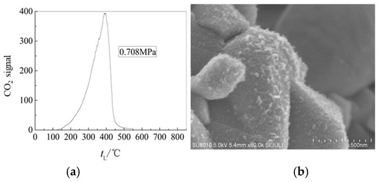 TPO profile (a) and SEM (b) of deposits of JP-10 on SS316L tube surface at wall temperature of 623.15 K and 2.831 MPa for 6 h.