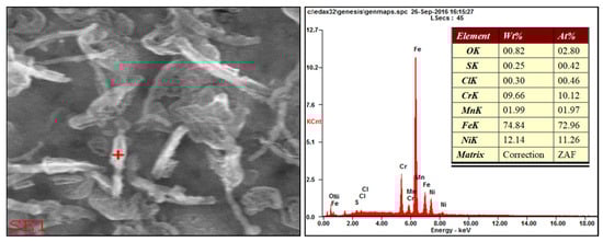 Surface morphologies of carbon deposits were characterized by a field emission scanning electron microscope (FESEM, Hitachi High-Tech Corporation (Tokyo, Japan)) equipped with a high-performance X-ray energy spectrometer (EDS). The location where the samples are characterized by FESEM is at the 45–50 cm section.