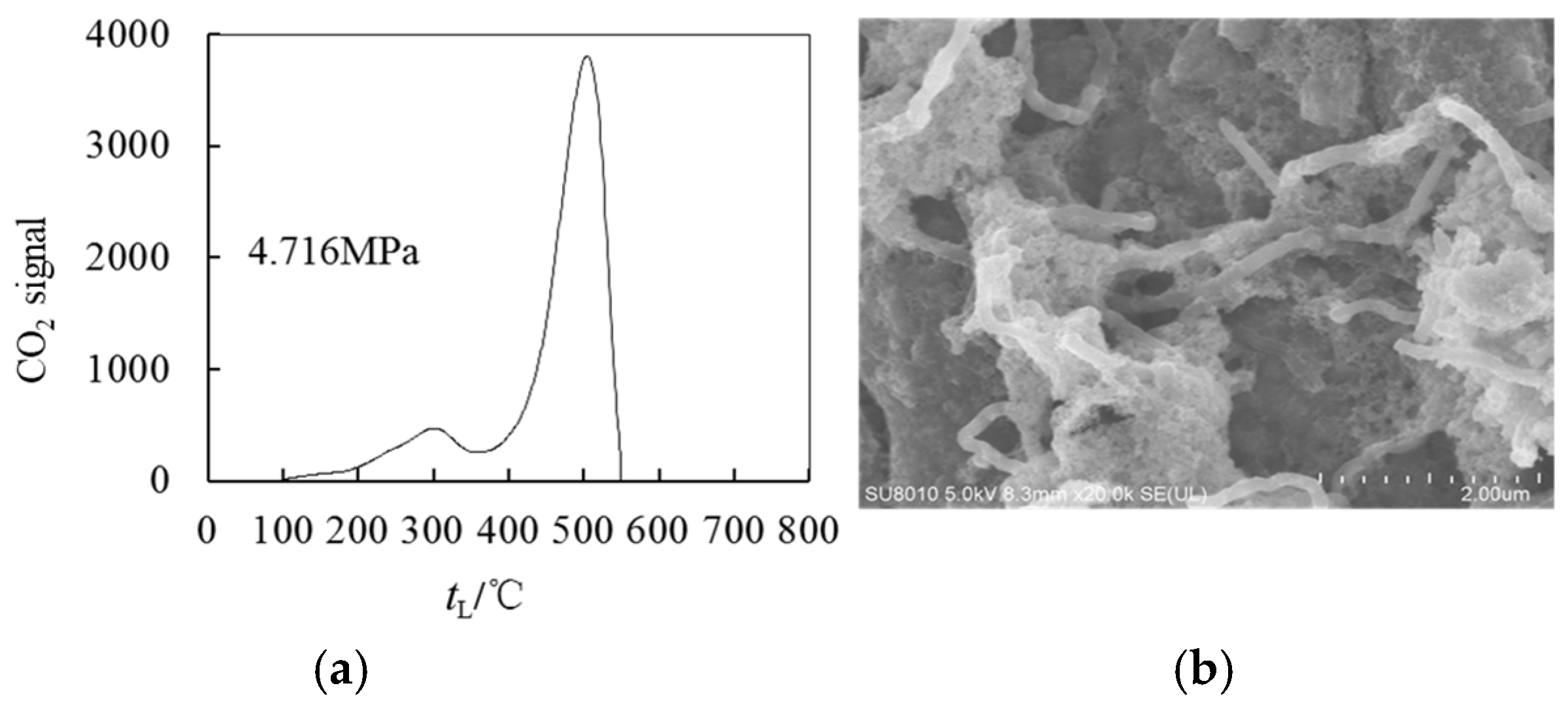 3.2.2. TPO and FESEM Analysis of Pyrolytic Deposits