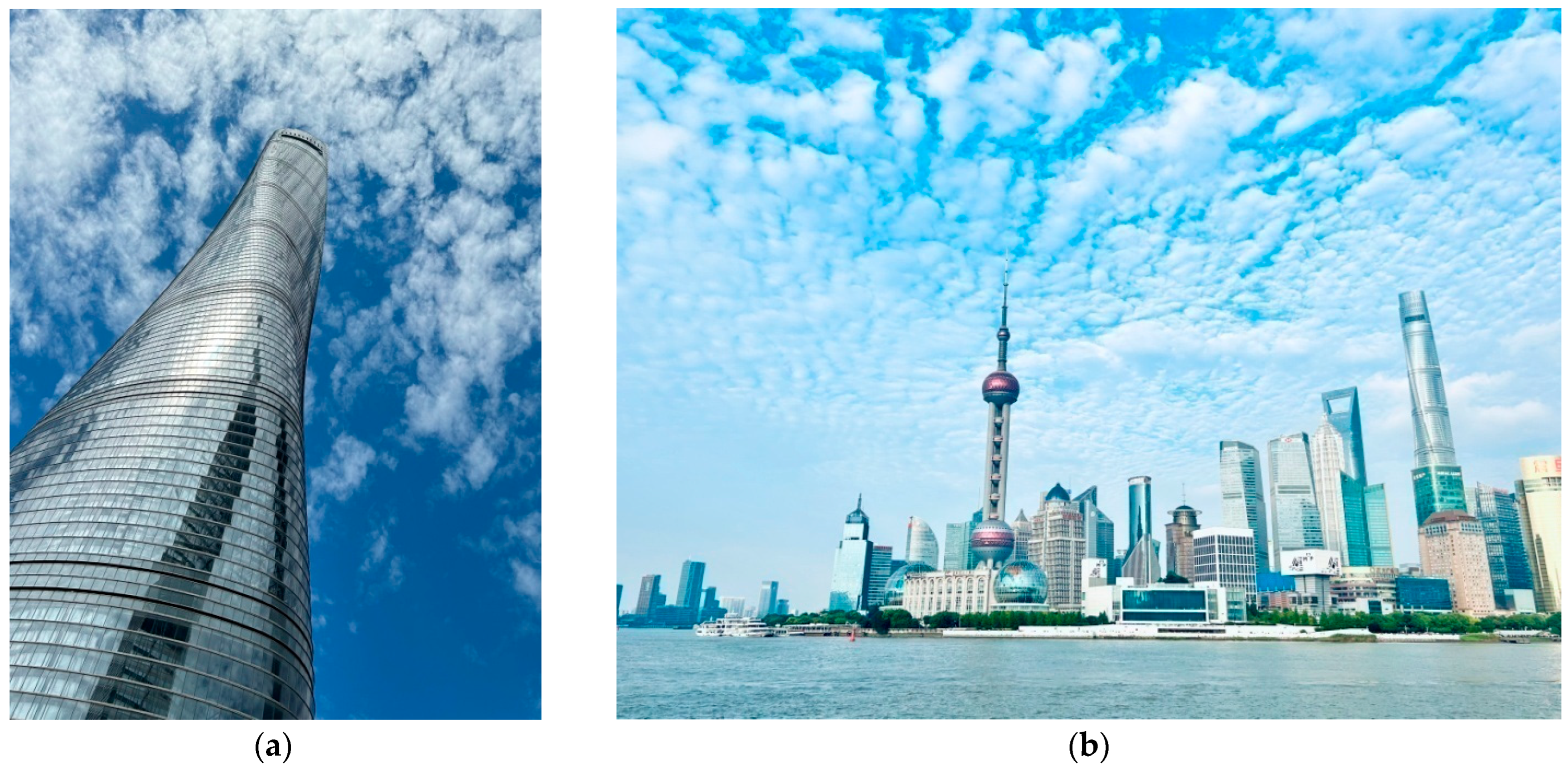 - Zhao, M.; Zhang, J.; Cai, J. Influences of new high-rise buildings on visual preference evaluation of original urban landmarks: A case study in Shanghai, China. J. Asian Archit. Build. Eng. 2020, 19, 273–284. [Google Scholar] [CrossRef]