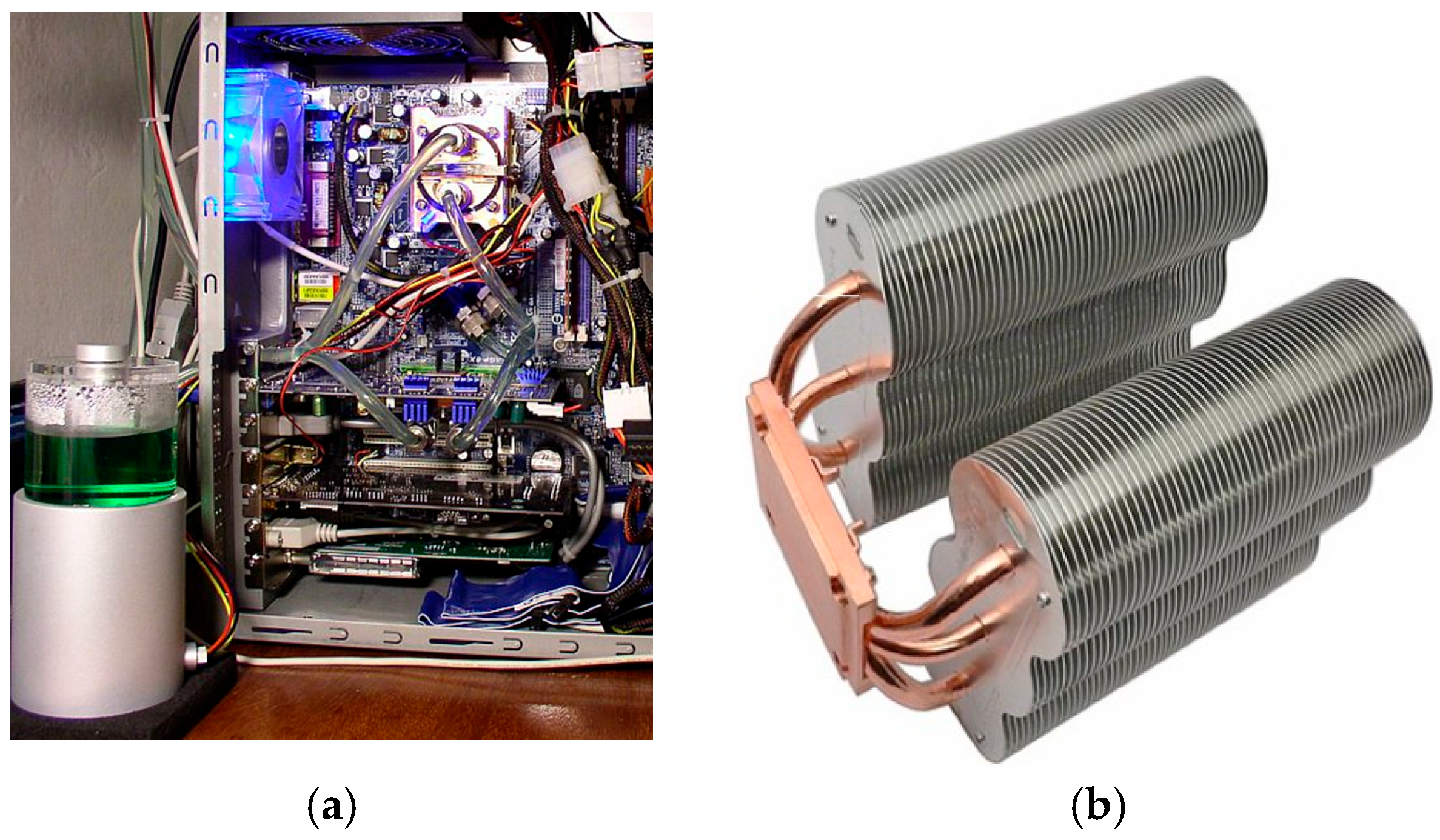 Figure 1b). For reliable heat dissipation, the cooling air flow is provided by a fan system or liquid circuits with forced movement of the heat transfer medium.
