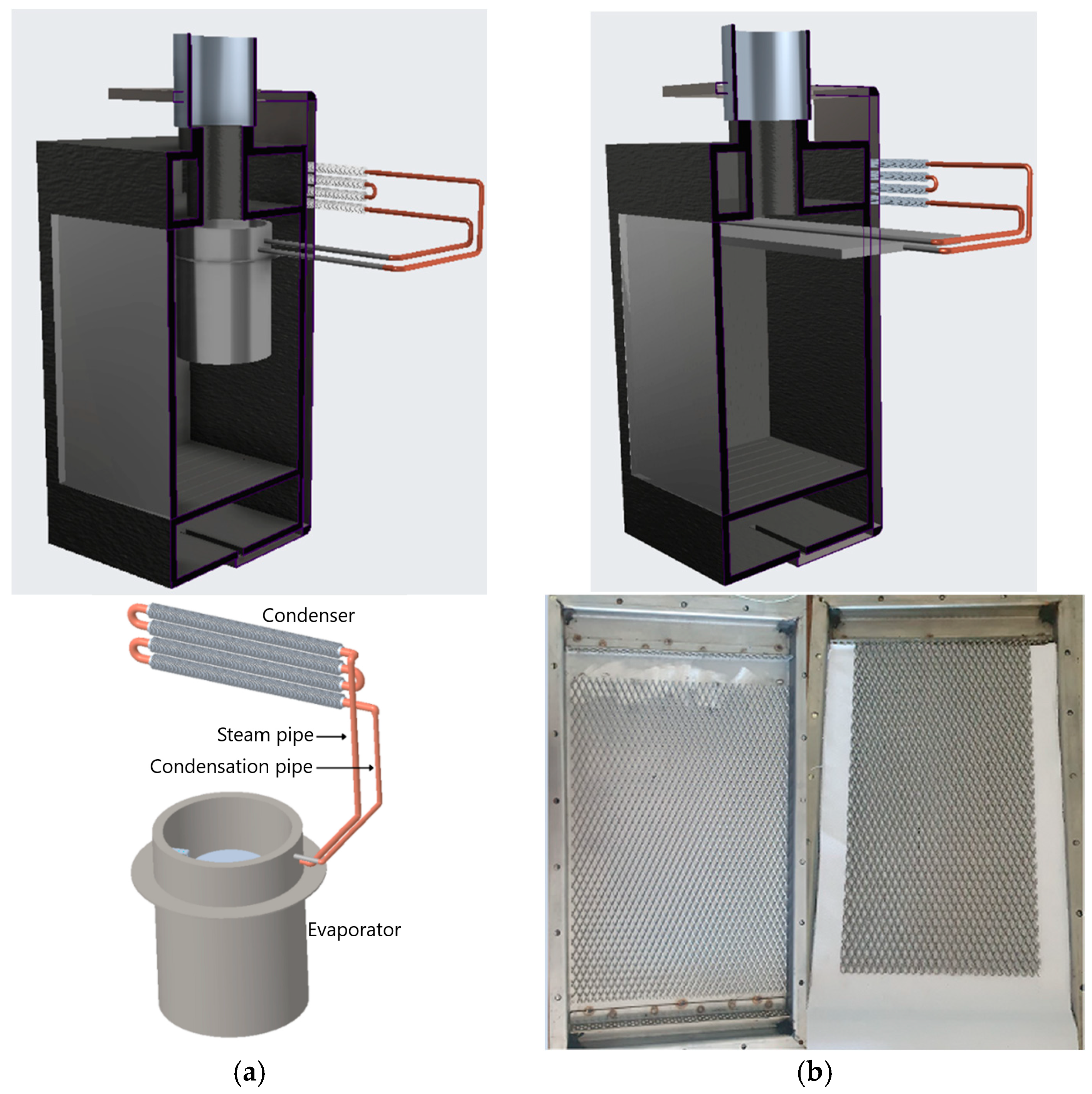 3.3.1. Design of a Device to Reduce the Radiation Output of a Fireplace Insert Using a Loop Heat Pipe