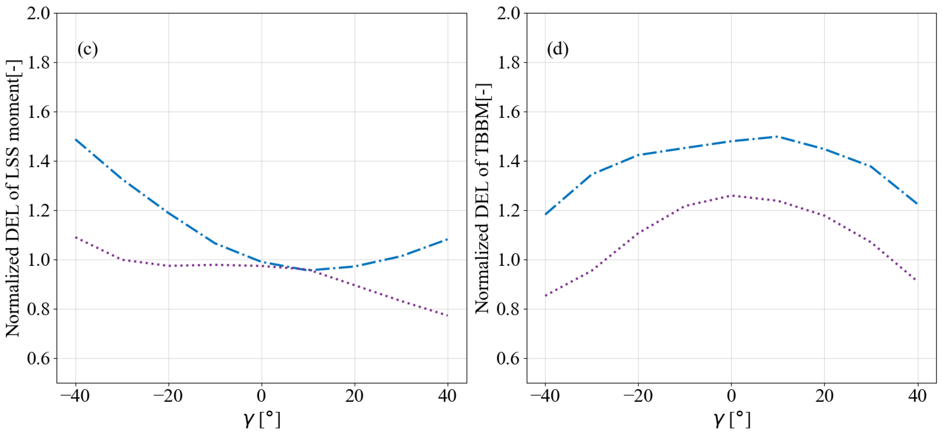 γ of 40°. The fatigue load of the tower base moment, presented in