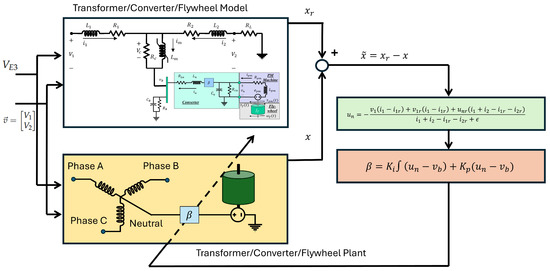 Hamiltonian controls are developed with these criteria in mind. The Hamiltonian control law is developed here to minimize transformer magnetic core flux and minimize the energy storage requirements for this controller. This is used as a baseline for future development of other control laws that may have different control objectives. The dynamics of the per-phase transformer are described by the equations in (5). Given that the objective of the optimal control law is to maintain the transformer’s magnetic core flux within the unsaturated region, it is reasonable to assume that λ m is linear, allowing for the approximation of i m as i m λ m 500 . Consequently, (5) can be reformulated into a matrix form more conducive to the Hamiltonian construction: