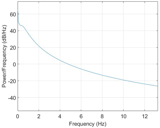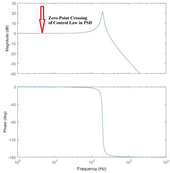 Figure 11. Power spectral density of the control law implemented to mitigate the HEMP insult, with a roll-off frequency of around 5 Hz.