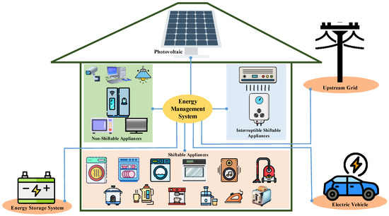- Dehghani, M.; Bornapour, S.M. Smart homes energy management: Optimal multi-objective appliance scheduling model considering electrical energy storage and renewable energy resources. Heliyon 2025, 11, e42417. [Google Scholar] [CrossRef] [PubMed]