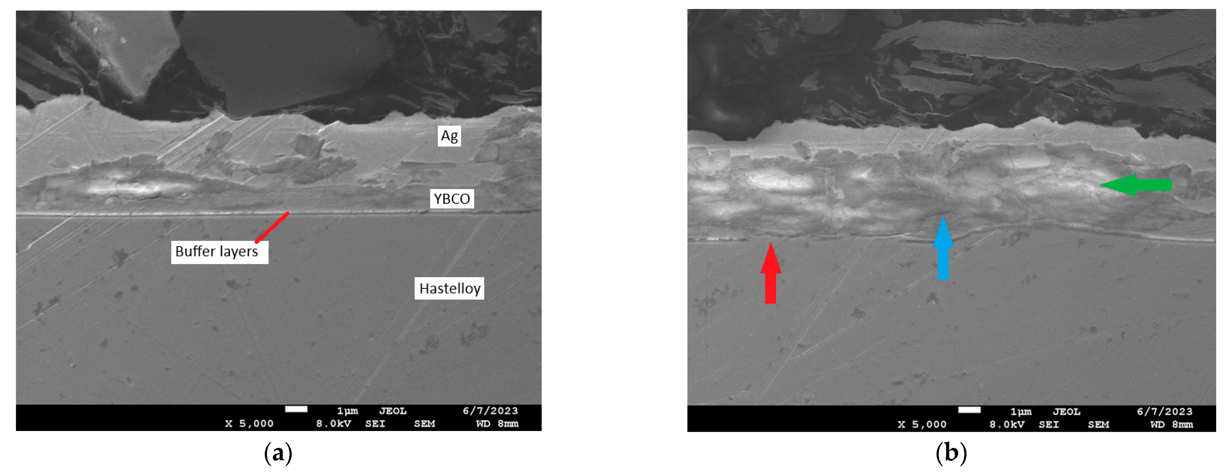 - Hajdasz, S.; Kempski, A.; Arkusz, K.; Szczesniak, P. The Identification of Microstructural Changes in High-Temperature Superconducting Tapes for Superconducting Fault Current Limiters. Appl. Sci. 2024, 14, 9520. [Google Scholar] [CrossRef]
